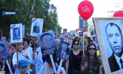 Абдан таасирдүү учур. Катышуучулардын ар биринин колунда, баатырларынын портреттери - Жеңишти колунан келишинче жакындаткан аталардын элеси. Бишкекте “Өлбөс полк” жүрүшү өттү. Элдин т...