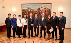 Жогорку Кеңештин Япония менен кызматташуу боюнча парламенттик тобунун жетекчиси Талайбек Масабиров аталган өлкөнүн Кыргызстандагы элчиси Сигеки Маэда жана JICAнын туруктуу өкүлү Хироюки Кавамото менен...