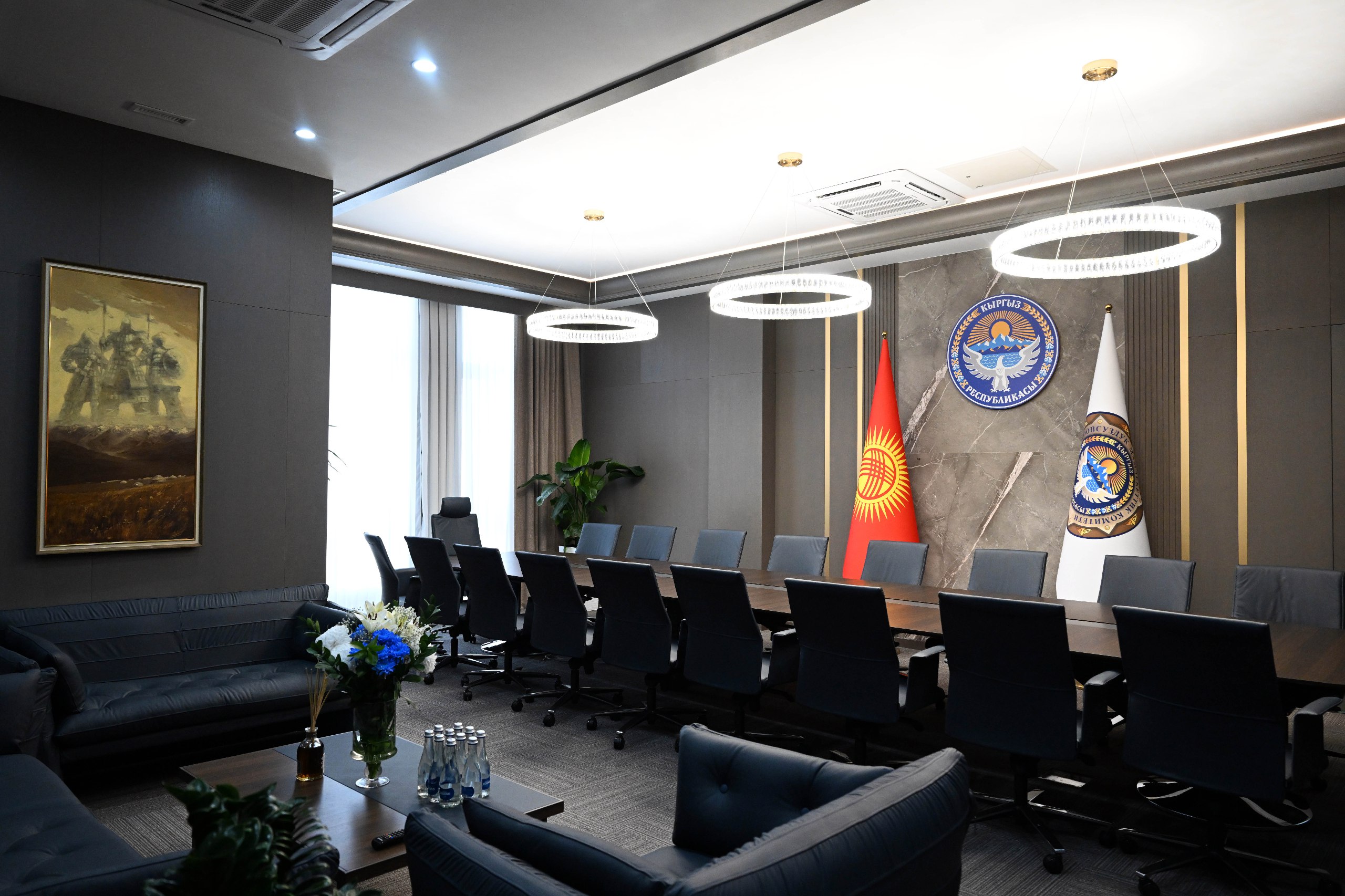 Ал акыркы 4-5 жылдын ичинде өлкөбүздүн бардык аймагында Коопсуздук комитетинин аймактык башкармалыктарынын имараттары оңдоп-түзөөдөн өтүп, бир тобу жаңы салынып, материалдык-техникалык базасы жаңыртылганын айтты.