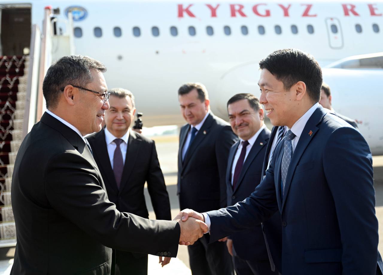 Президент Садыр Жапаровду Тажикстандын Премьер-министри Кохир Расулзода жана башка расмий адамдар тосуп алышты.