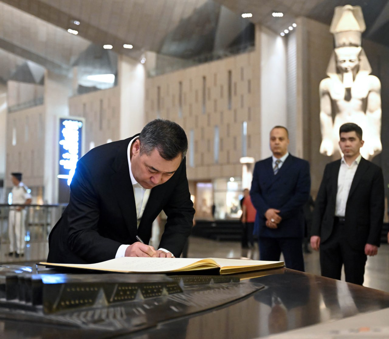 Ошондой эле Мамлекет башчысы расмий сапардын маданий программасынын алкагында атактуу Гиза пирамидаларынын комплексине жана Чоң Мисир музейине барды.