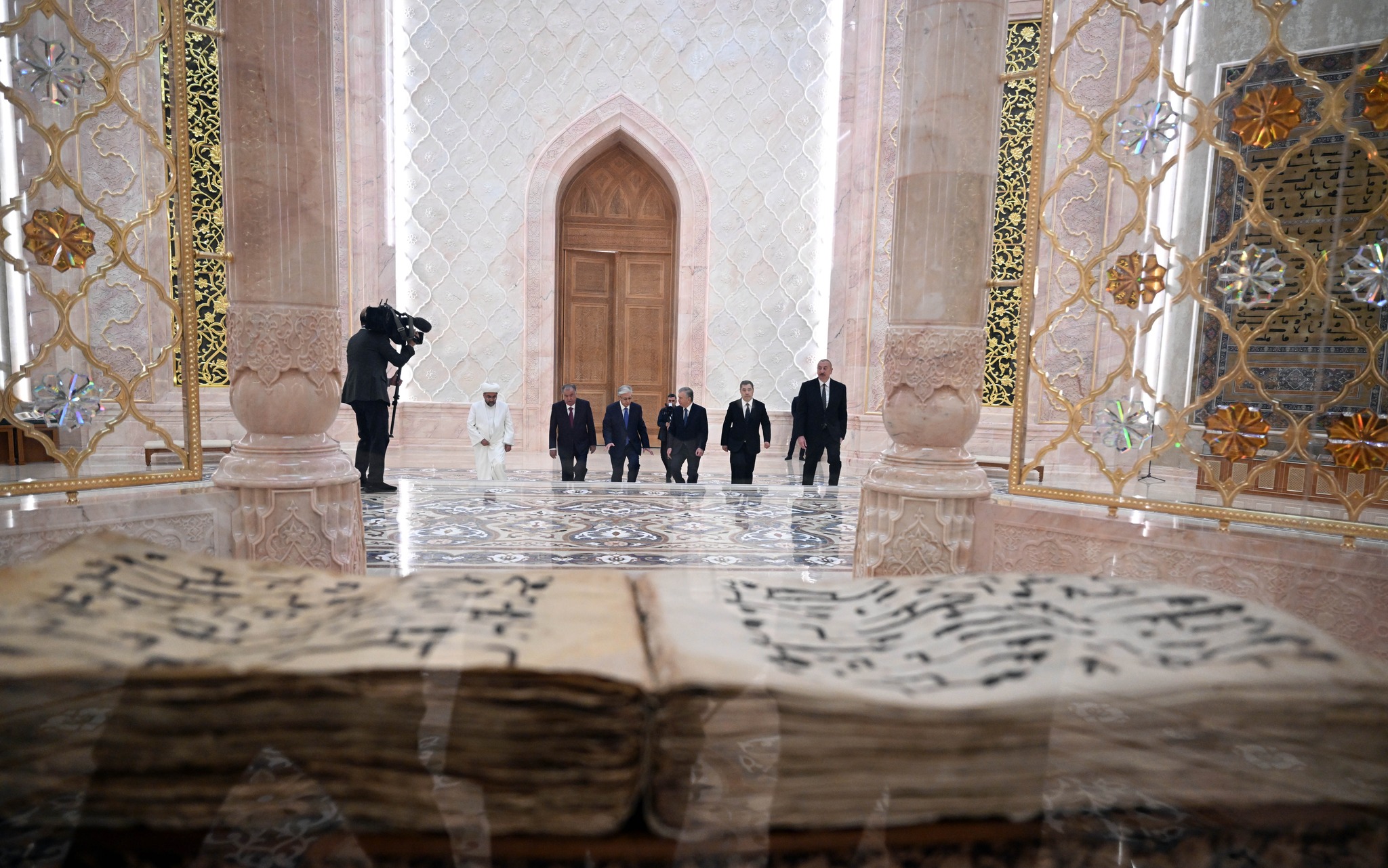 Азербайжан, Казакстан жана Тажикстандын лидерлери менен бирге Президент Садыр Жапаров Ыйык Куран залын көрүп чыкты, ал жерде Усмандын Мусхафы - ислам дүйнөсүндөгү эң байыркы жана эң ыйык кол жазмалардын бири сакталат.