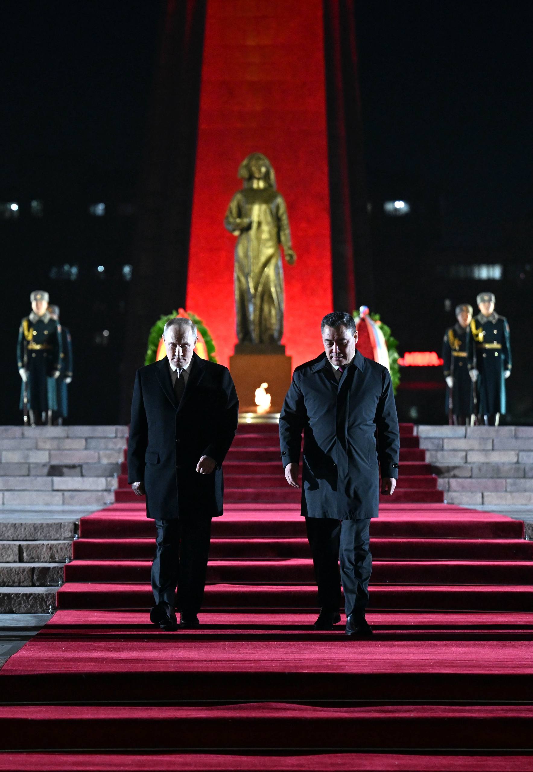 Кыргыз Республикасынын Президенти Садыр Жапаров жана Россия Федерациясынын Президенти Владимир Путин бүгүн, 25-ноябрда, Россия лидеринин Кыргызстанга болгон мамлекеттик сапарынын алкагында Бишкек шаарында Жеңиш аянтындагы Өчпөс отко гүлчамбар коюшту.