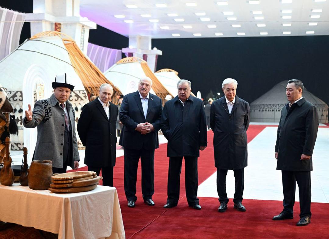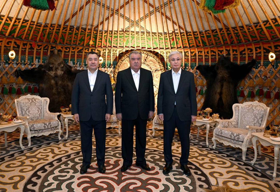 Ошондой эле Президент Садыр Жапаров мамлекет башчыларына кыргыз элинин сый-урматынын жана меймандостугунун символу катары колго жасалган панно жана улуттук музыкалык аспаптарды тартуу кылды.