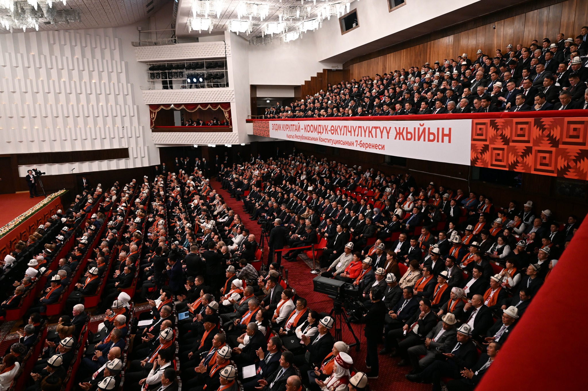 Бишкек шаарында Кыргыз Республикасынын Президенти Садыр Жапаровдун катышуусунда IV Элдик Курултай өтүп жатат.