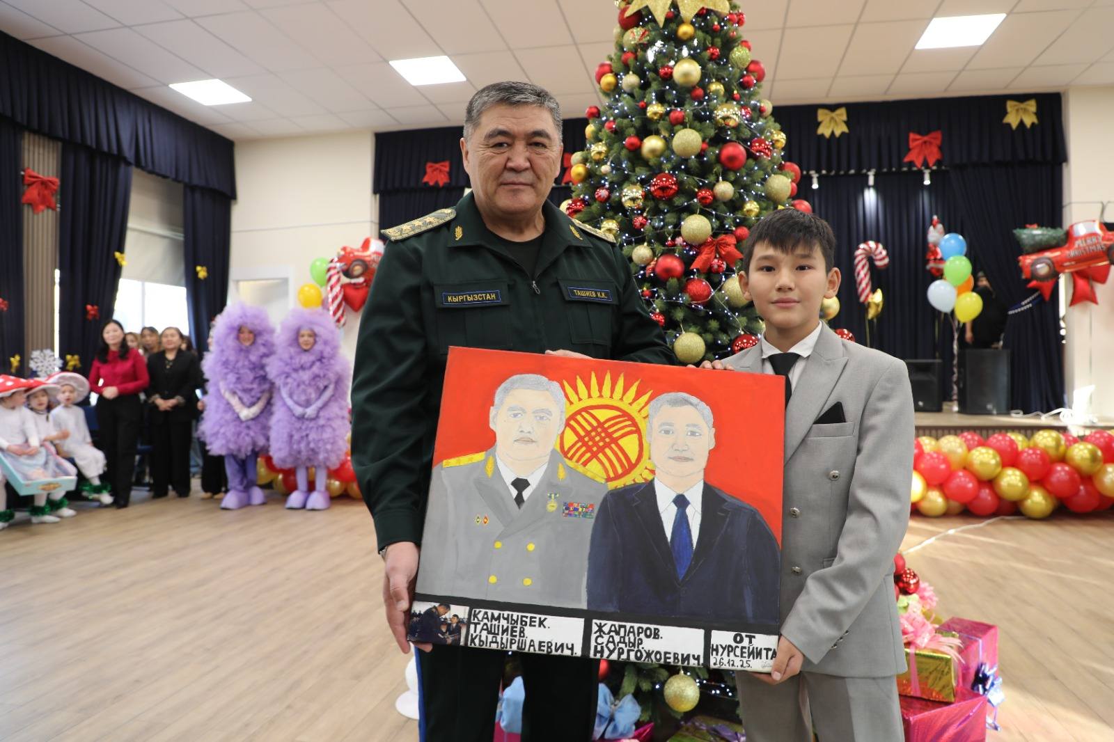 Иш-чаранын жүрүшүндө УКМК жетекчилигинин жана кызматкерлеринин атынан жаңы жылдык белектер жана бир миллион сом каржылык колдоо көрсөтүлдү. Мектеп-интернаттын окуучулары өз кезегинде жаңы жылдык майрамдык программа тартуулашты.
