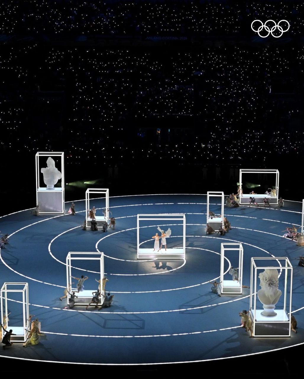 Көркөм программа Италиянын бай маданий мурасын, музыкалык жана бий өнөрүн заманбап технология менен айкалыштырып көрсөттү. Салтанаттын эң символикалуу учуру — Олимпиадалык оттун жандырылышы болду. Бул отту белгилүү италиялык спортчулар — легендарлуу тоо лыжачылары Алберто Томба жана Дебора Компаньони жандырышты. Тарыхта биринчи жолу от бир эле учурда эки шаарда жандырылды: Томба Миланда (Арка Мира аянтында), ал эми Компаньони — Кортина-д’Ампеццо шаарында (Дибона аянтында).