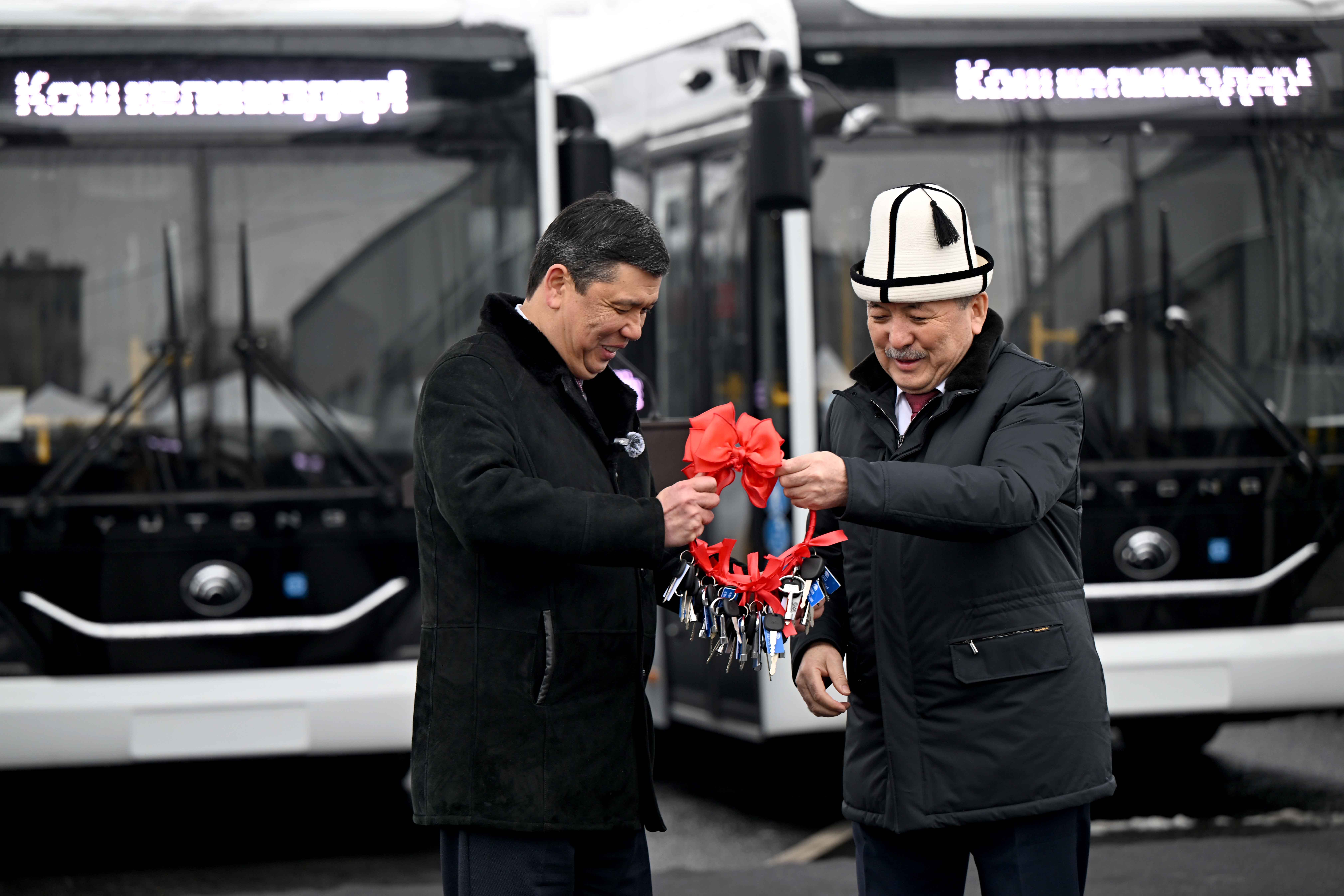 Бүгүн, 12-февралда Министрлер Кабинетинин Төрагасы Адылбек Касымалиев Бишкек мэриясына 95 жаңы автобустун жана 42 даана атайын техниканын ачкычын тапшырды.