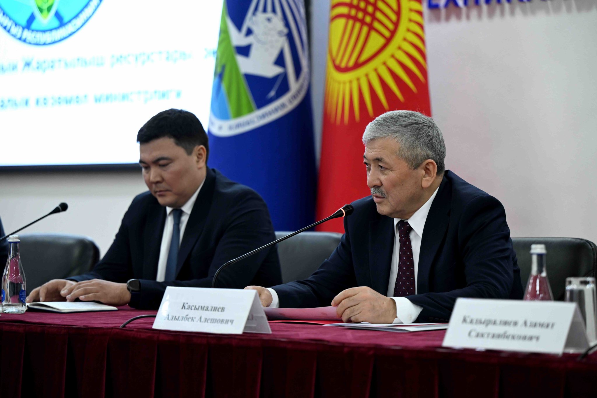 МинКаб башчысы Адылбек Касымалиев Жаратылыш ресурстары, экология жана техникалык көзөмөл министрлигинин жамаатына министрдин милдетин аткаруучу Акыл Токтобаевди тааныштырды.