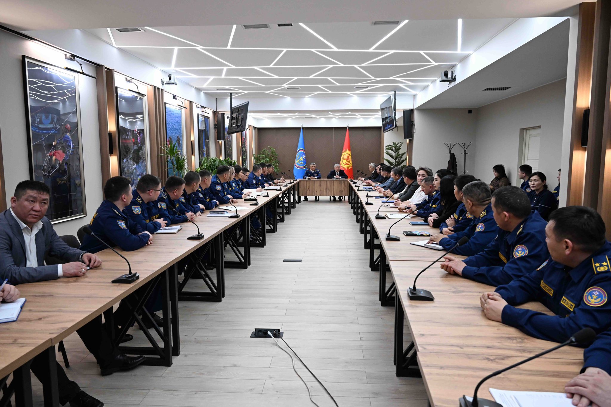 Адылбек Касымалиев Өзгөчө кырдаалдар министрлигинин жамаатына министрдин милдетин аткаруучу Урматбек Шамыркановду тааныштырды.