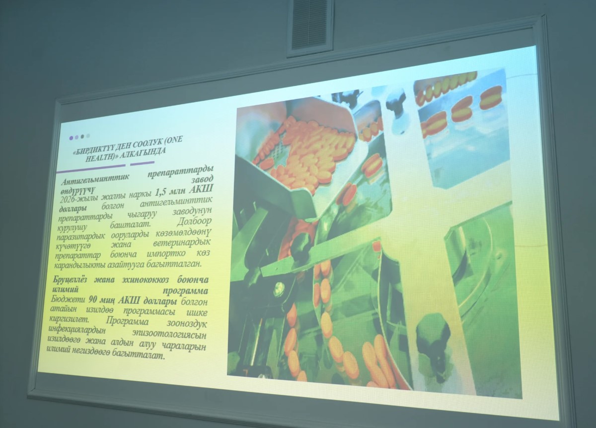 Маалыматка ылайык, министр институттун материалдык-техникалык базасы, заманбап лабораториялары жана илимий изилдөөлөрүнүн негизги багыттары менен таанышты. Ошондой эле ветеринардык коопсуздукту камсыз кылуу боюнча жүргүзүлүп жаткан иштер тууралуу кеңири маалымат алды. Иш-чаранын алкагында адистер менен тармактагы актуалдуу маселелер, аларды чечүү жолдору жана илим тармагындагы көйгөйлөр талкууланды.