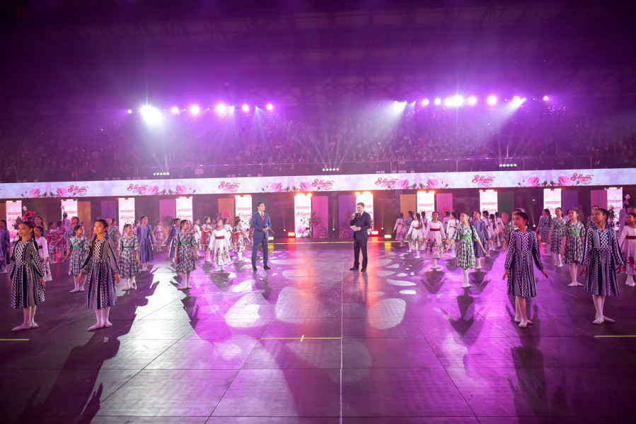 Бүгүн, 6-мартта борбор калаада 8-Март – Аялдардын эл аралык күнүнө арналган масштабдуу майрамдык иш-чара өттү. Салтанаттуу концерт «Жаштык» аренасынын имаратында уюштурулуп, ага шаардын бардык райондорунан келген 5000ге жакын аял катышты.