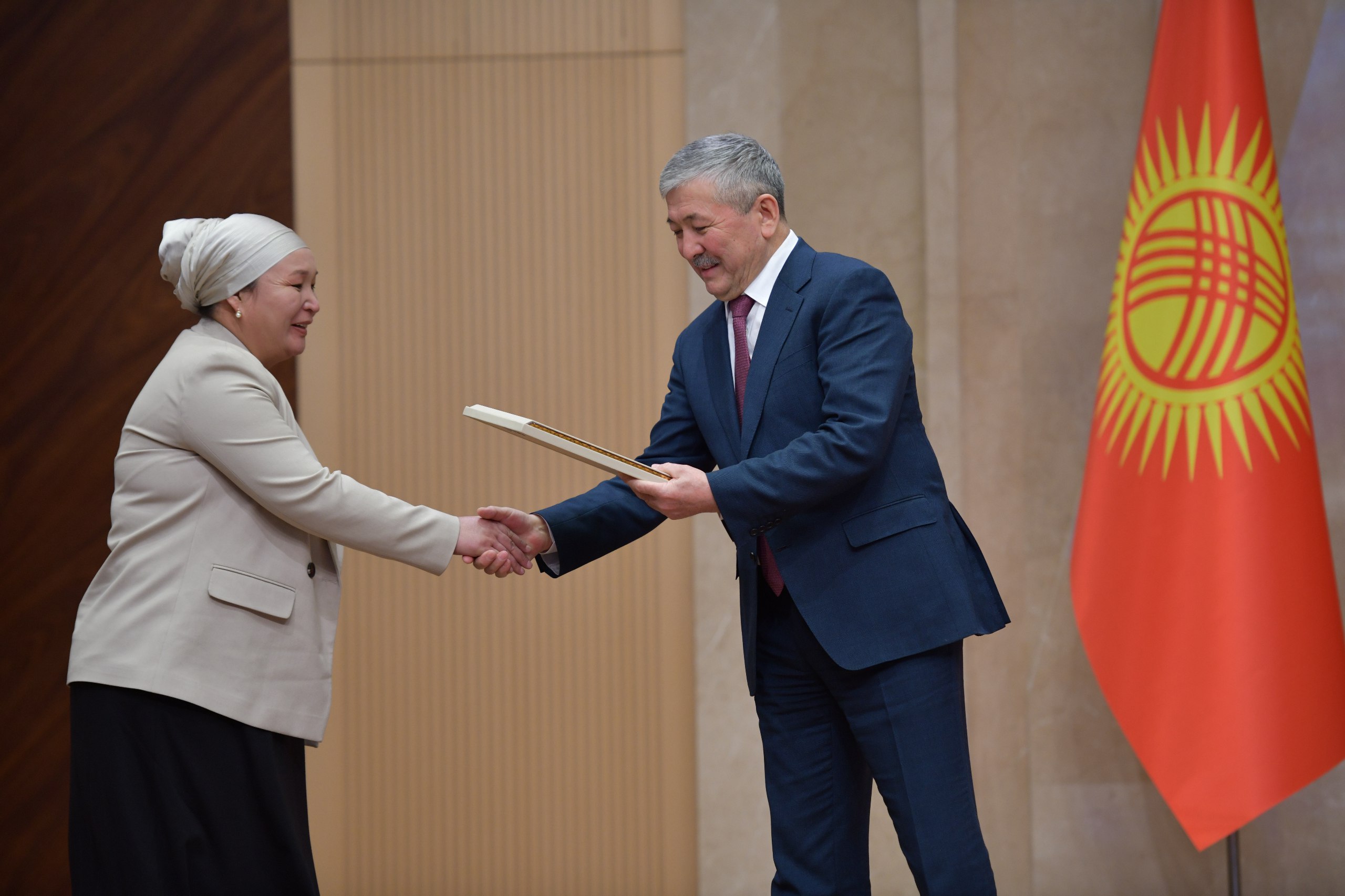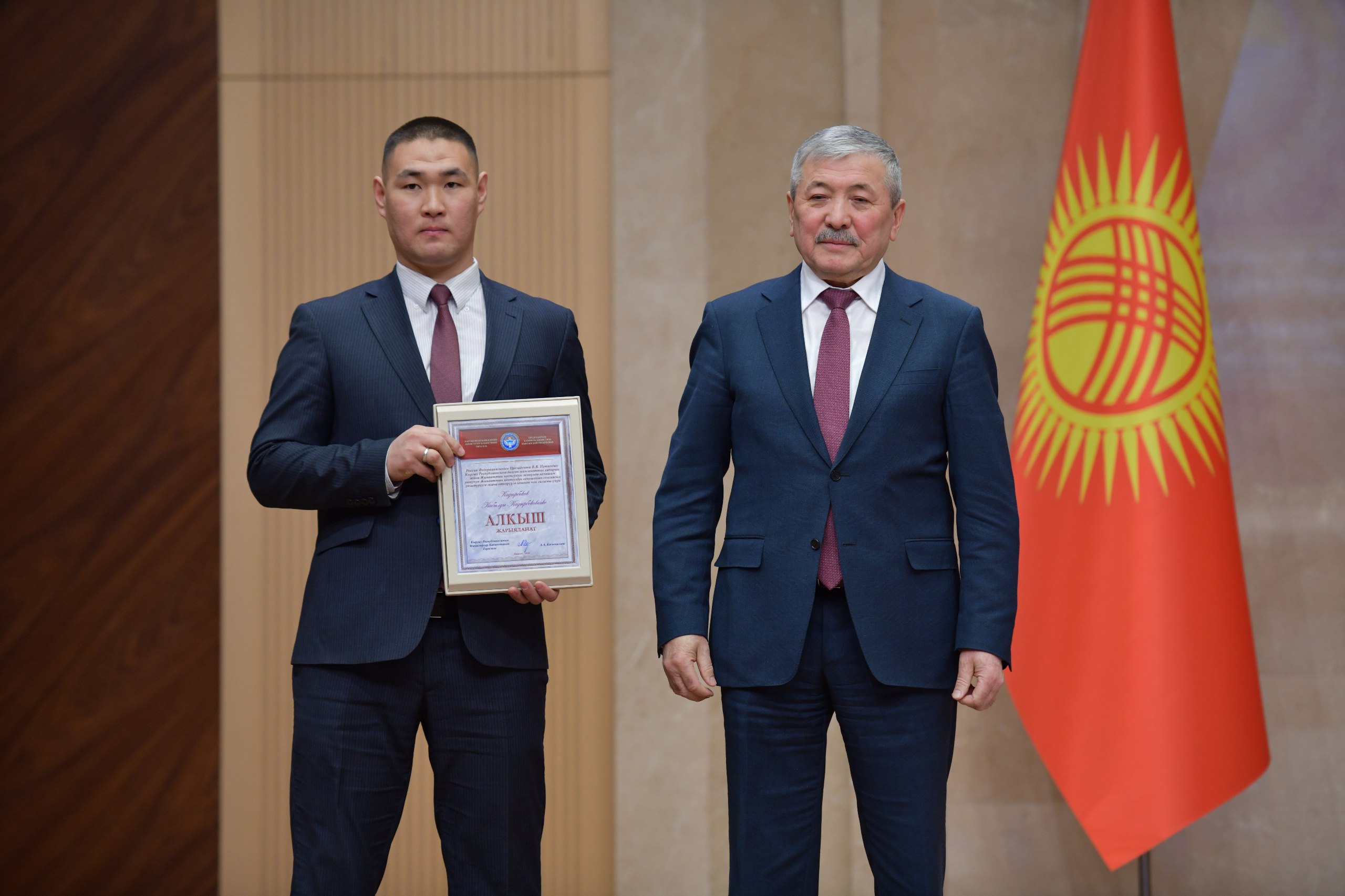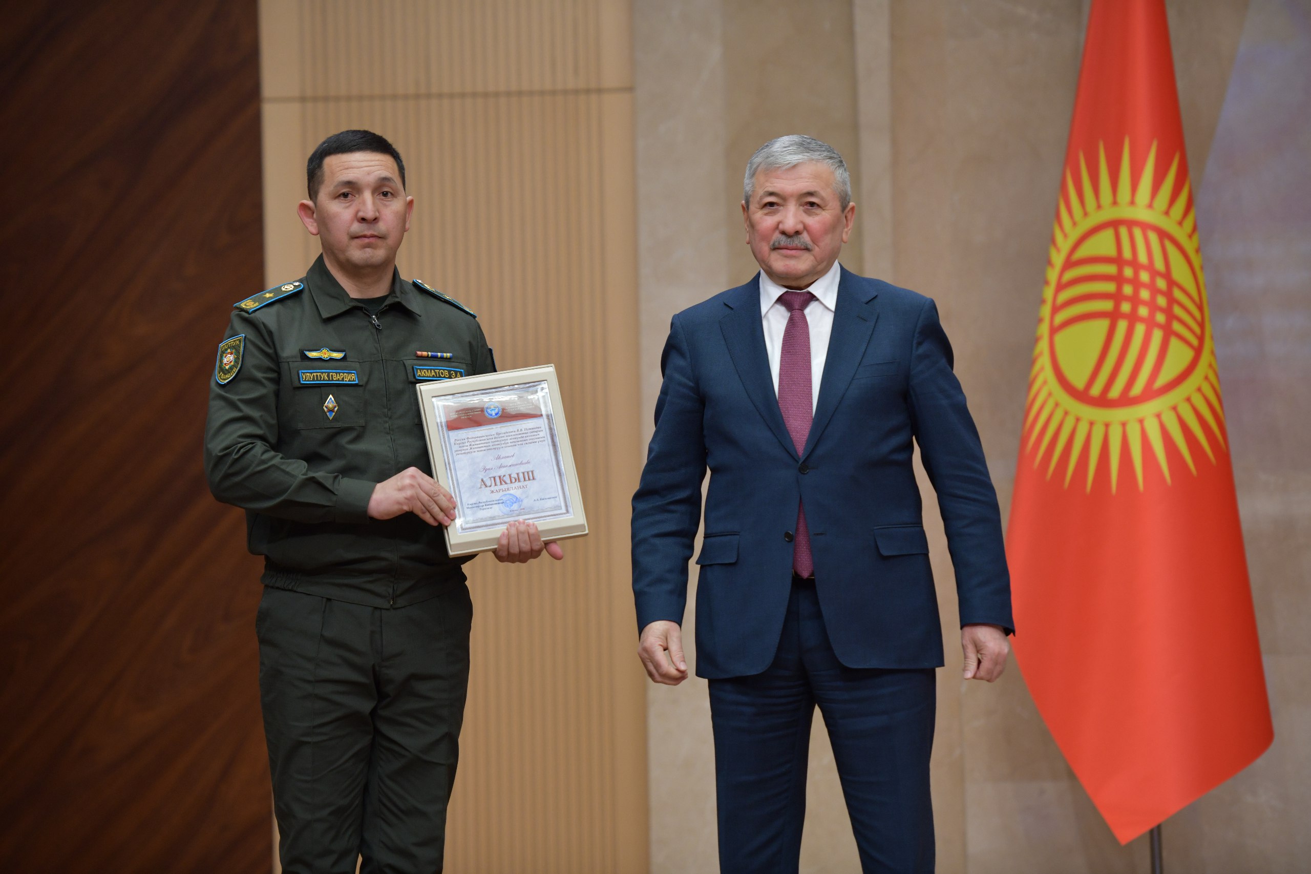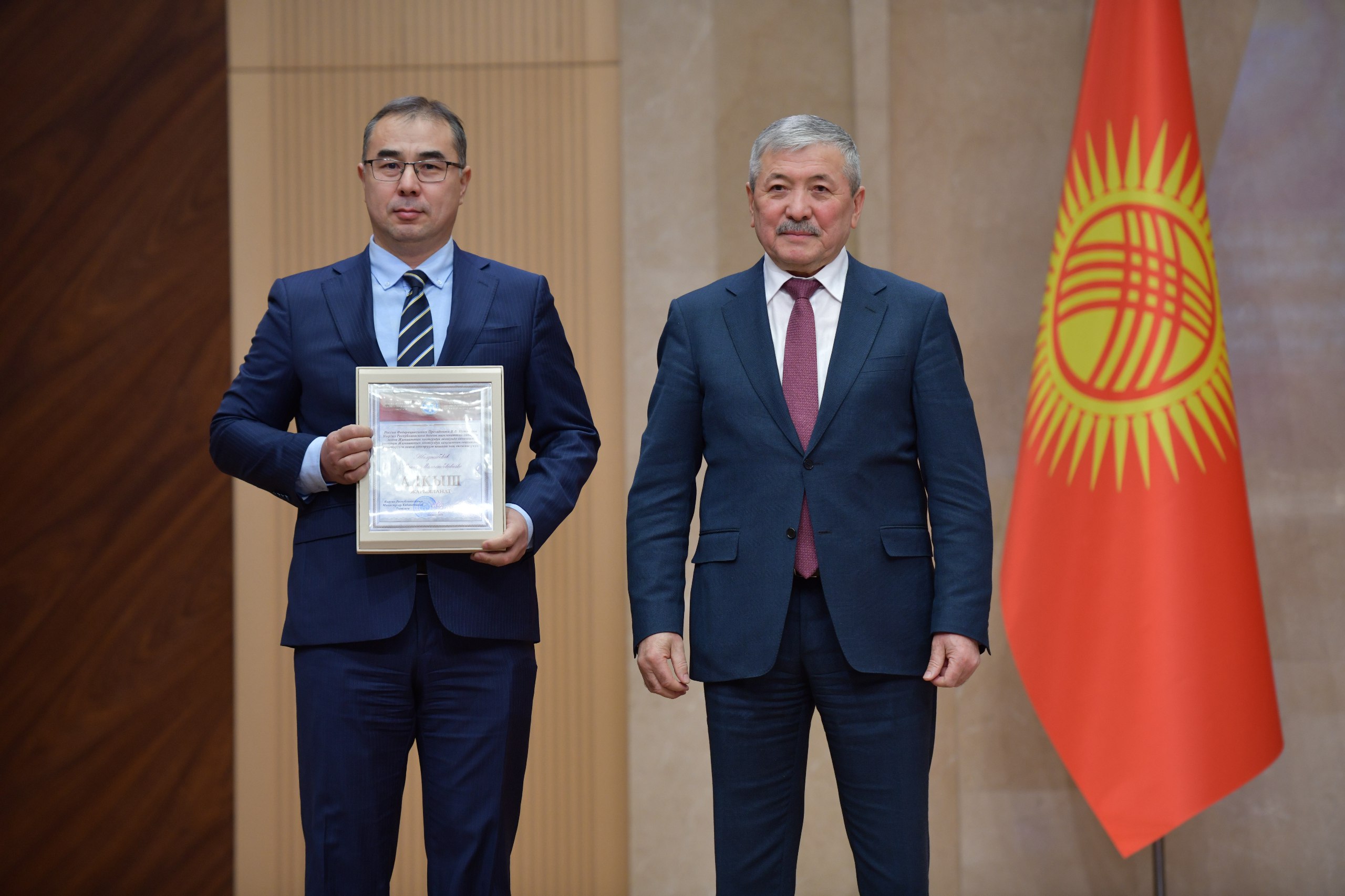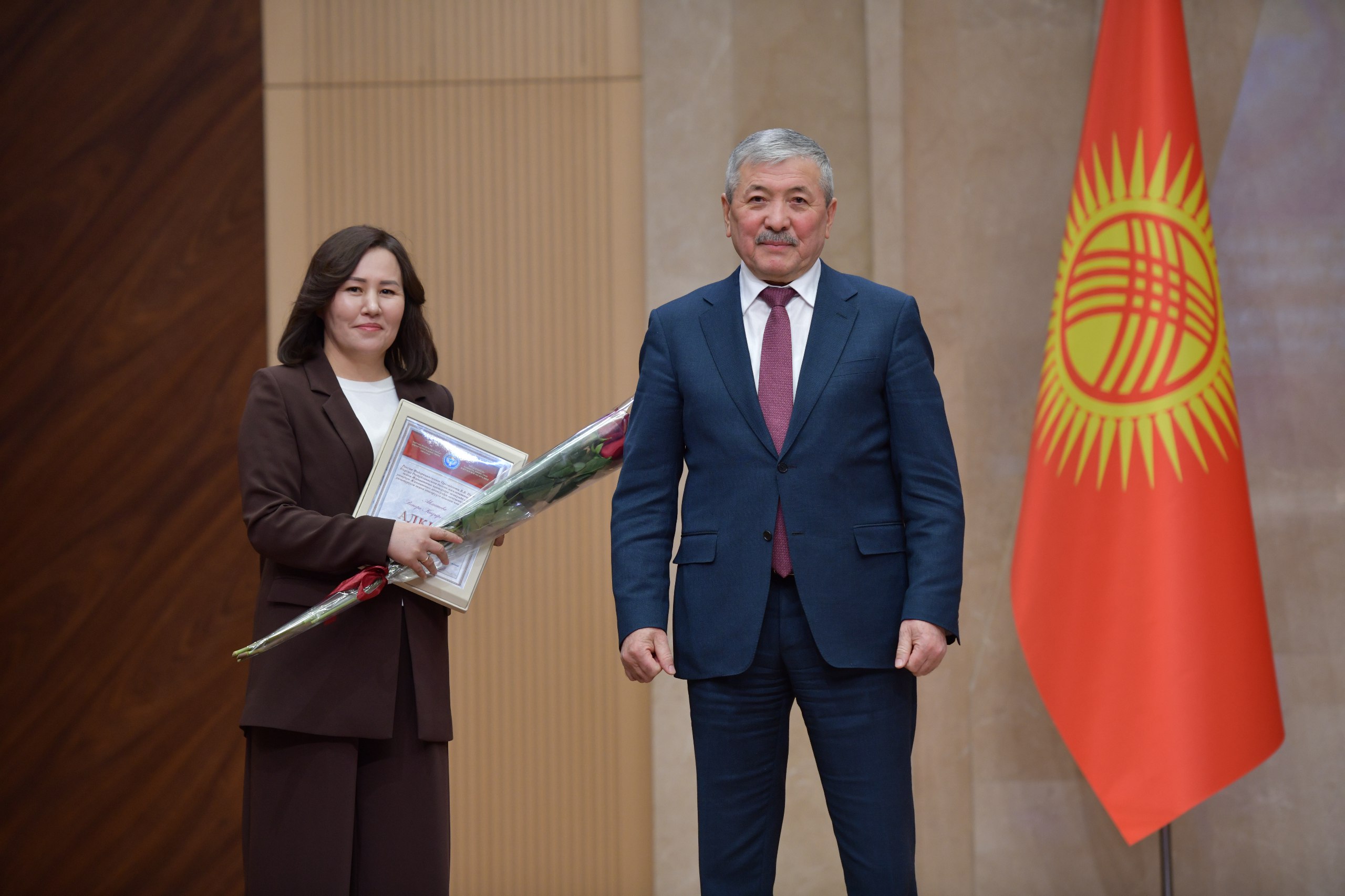 Министрлер Кабинетинин төрагасы Адылбек Касымалиев Кыргыз Республикасынын Министрлер Кабинетинин Ардак грамоталарын жана Министрлер Кабинетинин Төрагасынын алкышын өз ишинде натыйжа көрсөткөндөр жарандарга жана мамлекеттик кызматкерлерге тапшырды.