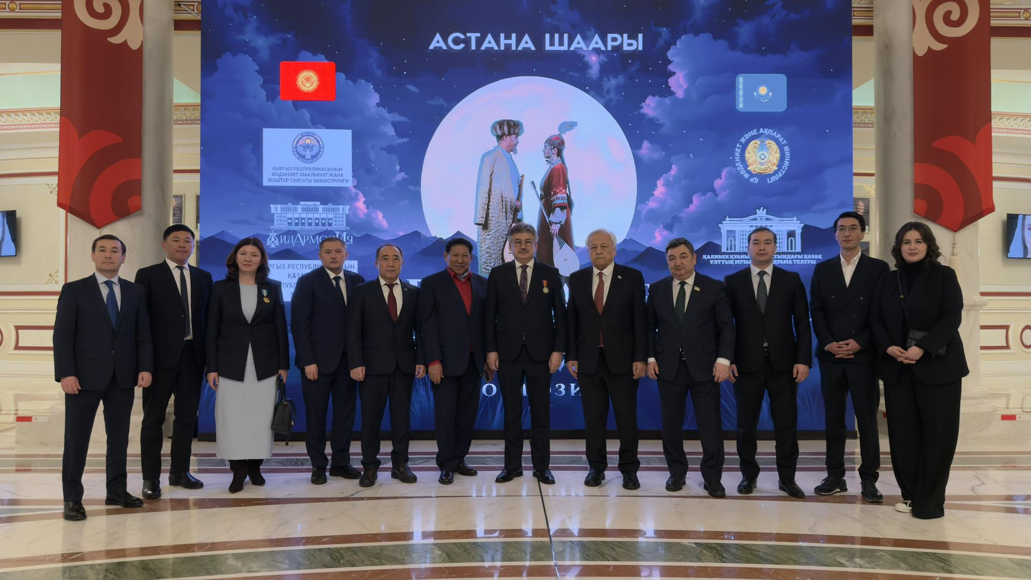 100 жылдыктын алкагында Т.Сатылганов атындагы Кыргыз Улуттук филармониясы Казакстандын Астана шаарындагы Калибек Куанышбаев атындагы Казак улуттук музыкалык драма театрында Чыңгыз Айтматовдун чыгармаларынын негизинде даярдалган “Раймалы менен Бегимай” этно-мюзиклин жана “Жамийла” мюзиклин казак коомчулугуна жана мекендештерге тартуулоодо.