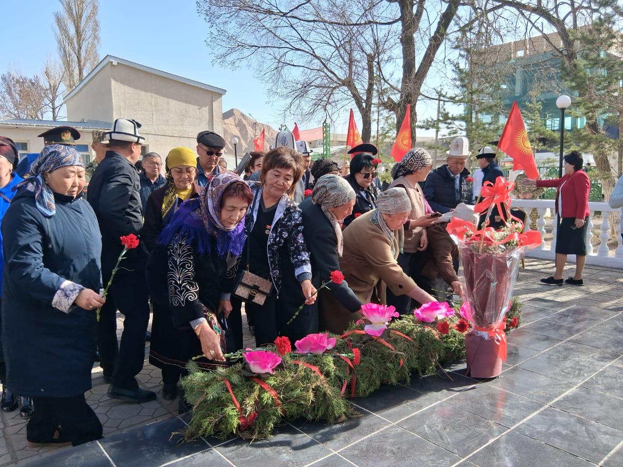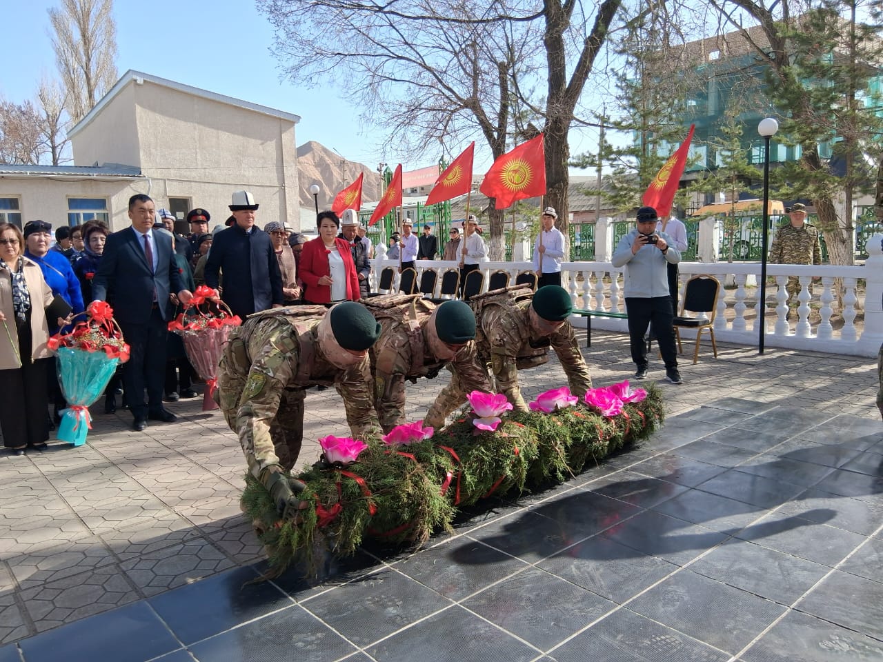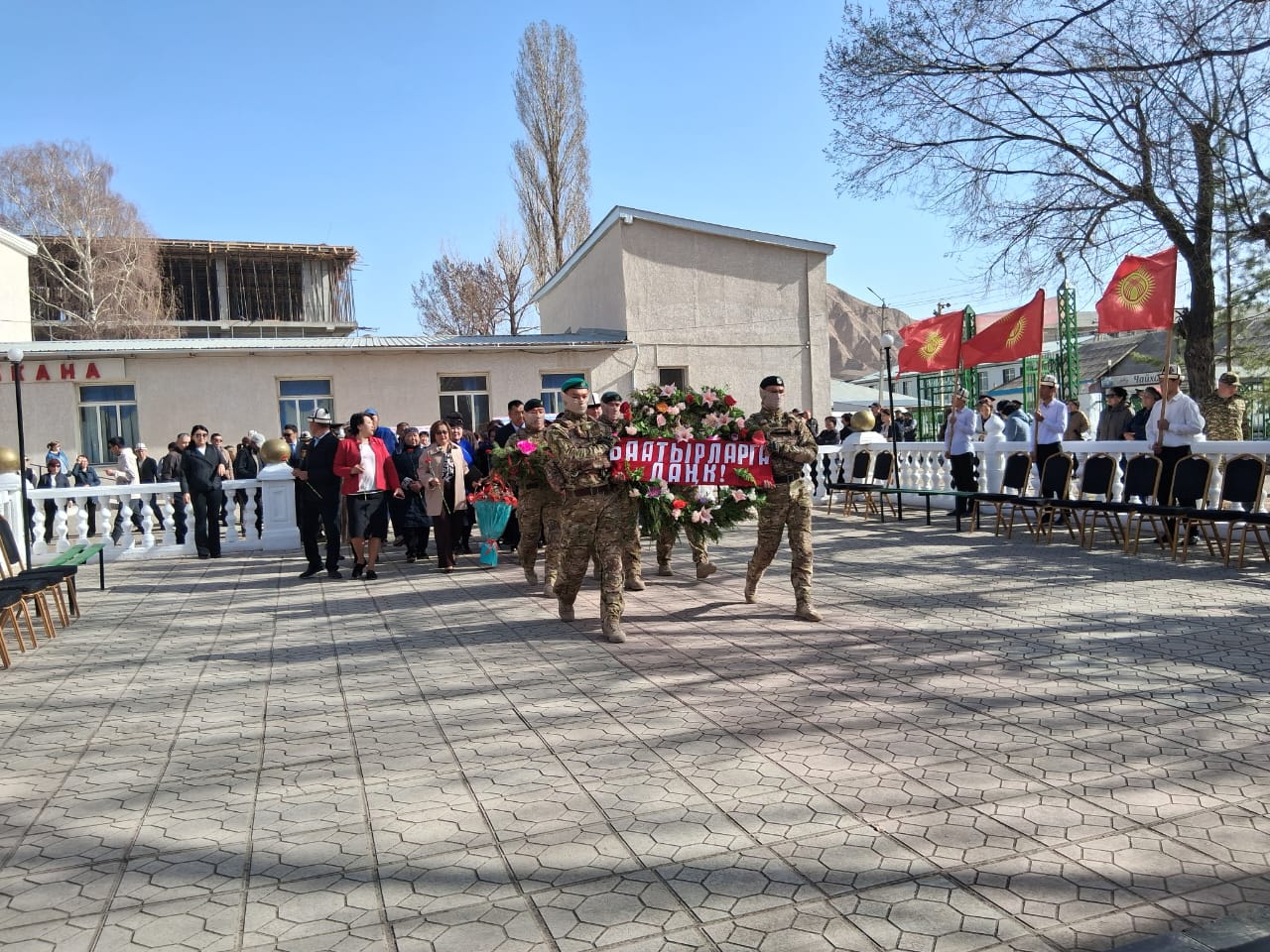 Эстеликке гүлчамбар коюлуп, асманга ок чыгарылып, куран окулду. Дубан башчы Нурбек Сатаров баатырлардын эрдиги эч качан унутулбасын белгилеп, жакындарына сабыр жана ден соолук каалады.