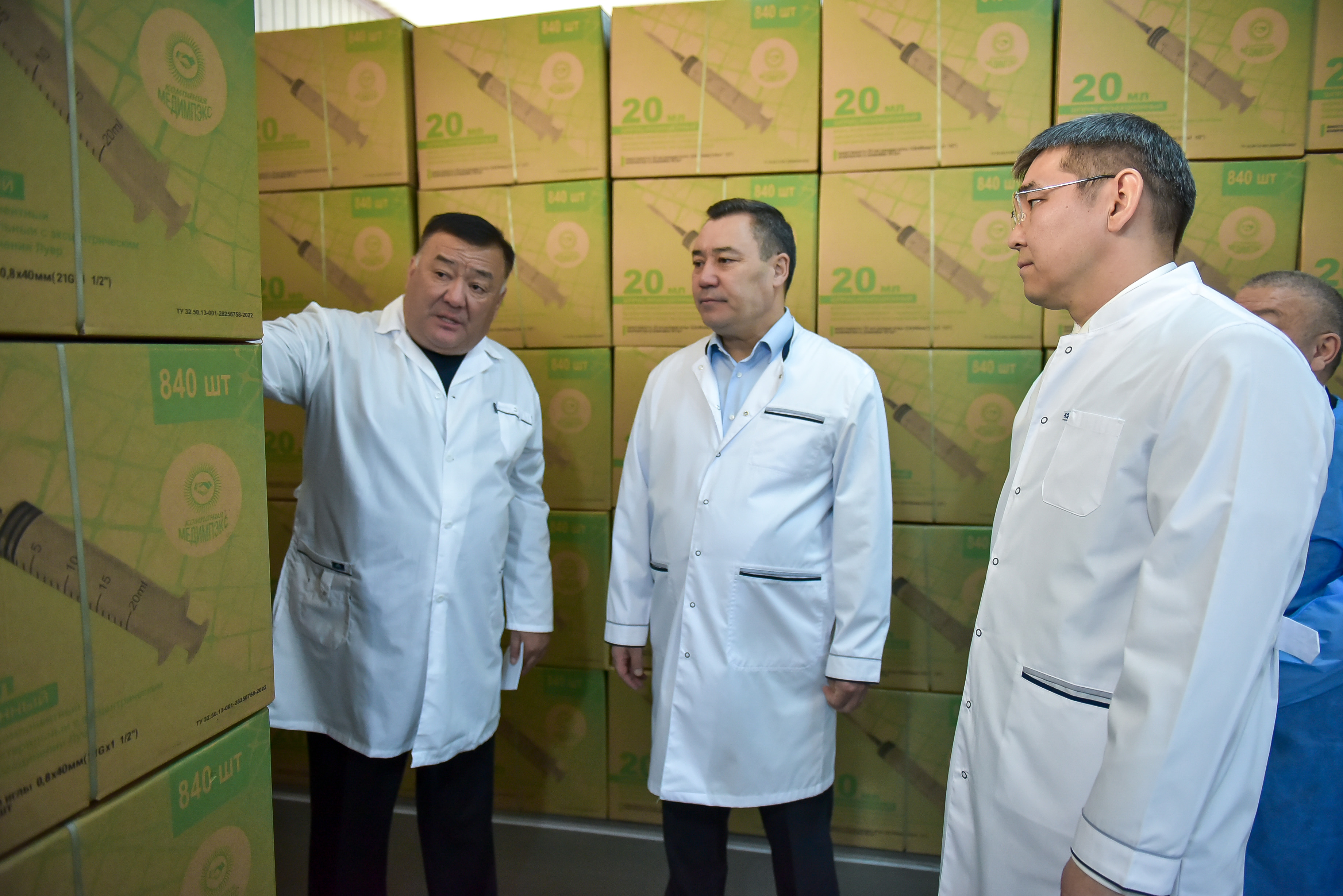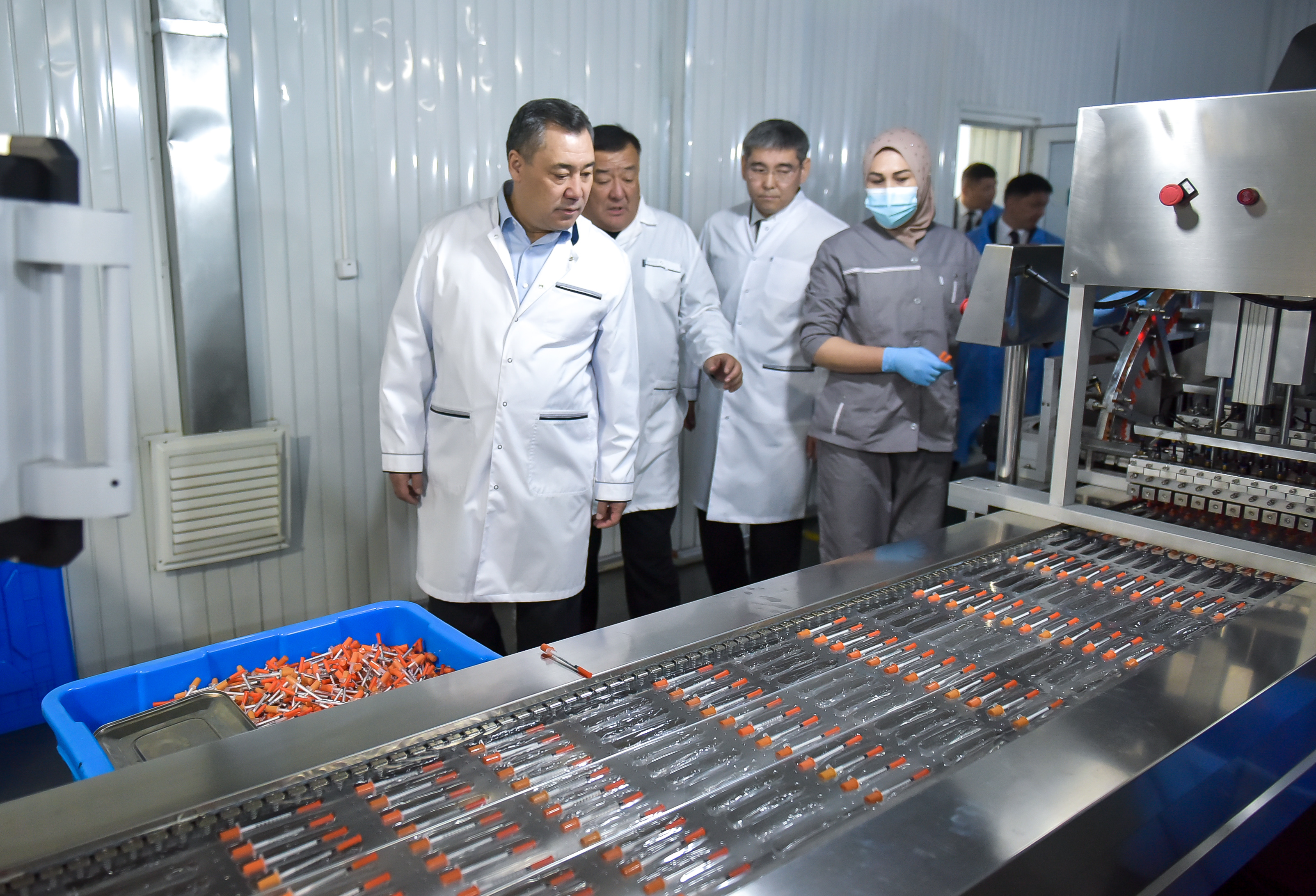 Мамлекет башчысы медициналык шприцтерди өндүрүүнүн технологиялык процесси, заманбап жабдуулардын иштеши жана ишканада автоматташтыруу деңгээли менен таанышты.