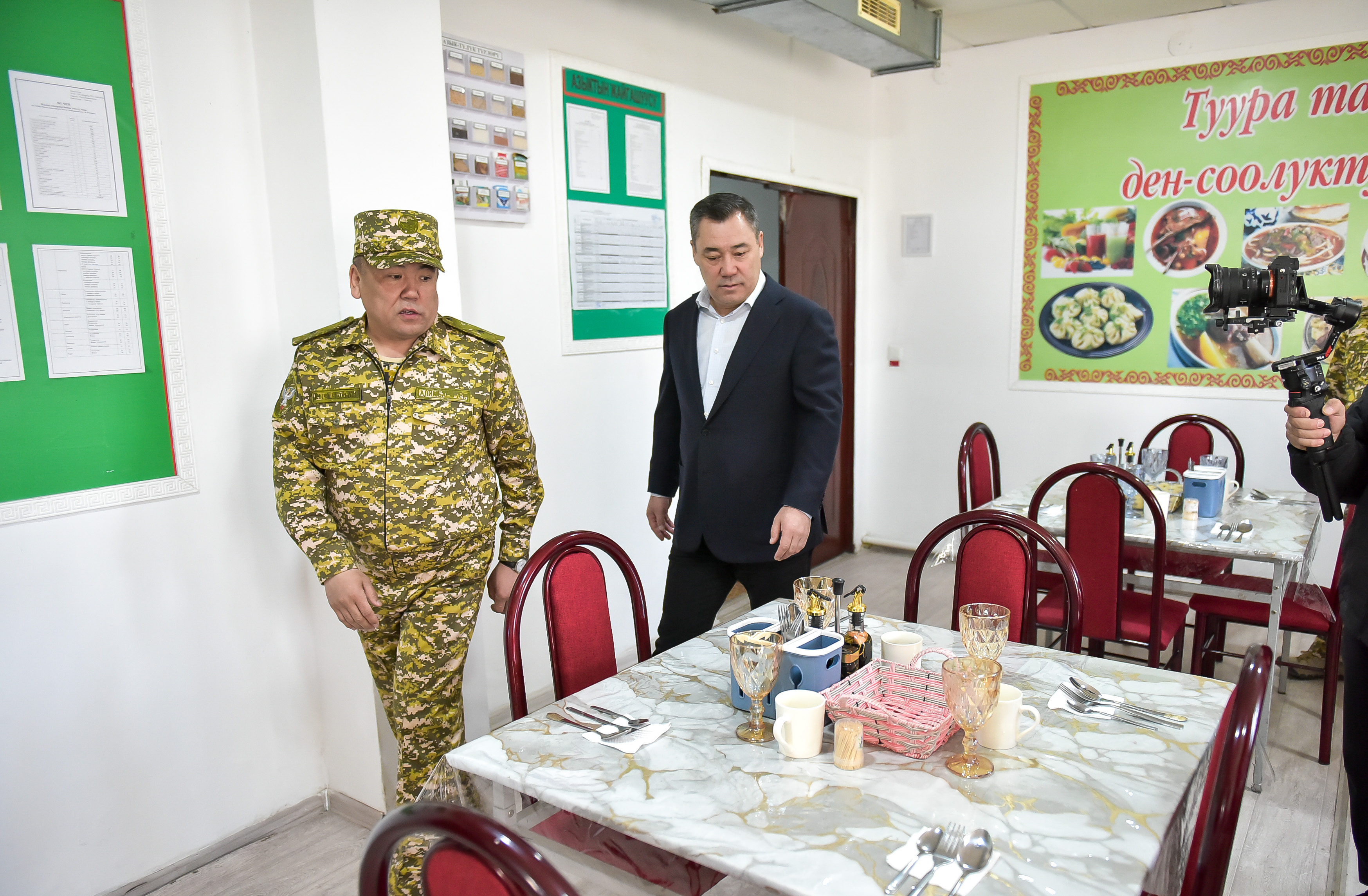 Президент Садыр Жапаров мамлекеттик чек арада кызмат өтөп жаткан аскер кызматкерлери үчүн заманбап жана ыңгайлуу шарттарды түзүүнүн маанилүүлүгүн баса белгилеп, чек ара бөлүктөрүнүн материалдык-техникалык базасын чыңдоо улуттук коопсуздук жаатындагы мамлекеттик саясаттын артыкчылыктуу багыттарынын бири экенин айтты.
