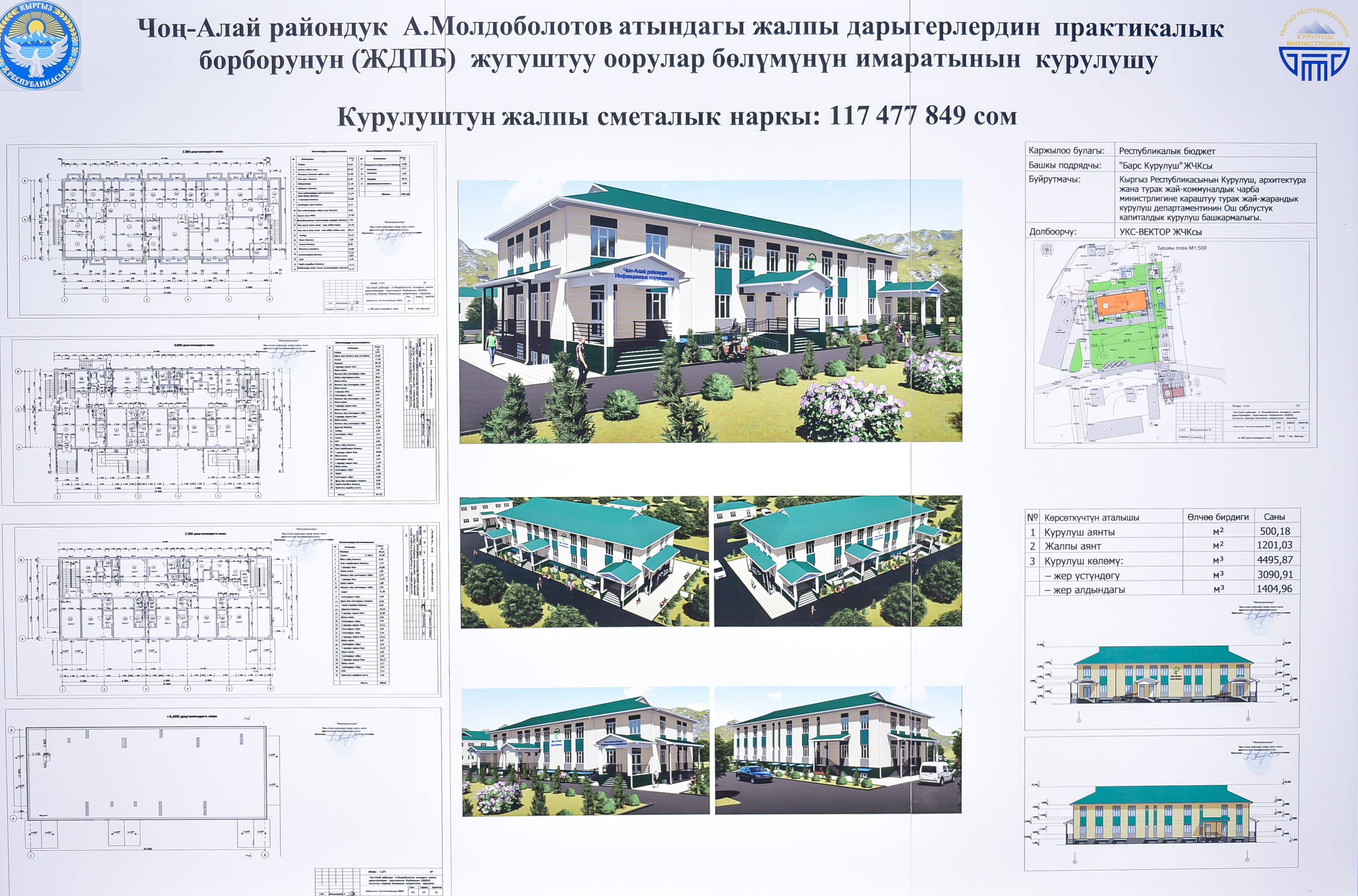 Саламаттык сактоо министри Дамирбек Осмонов Мамлекет башчысына курулуш иштери быйыл жыл ичинде аяктай турганын маалымдады. Бөлүм зарыл болгон медициналык жабдуулар менен камсыздалат.