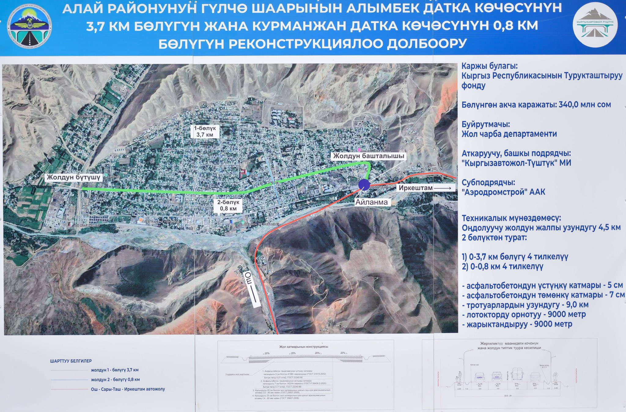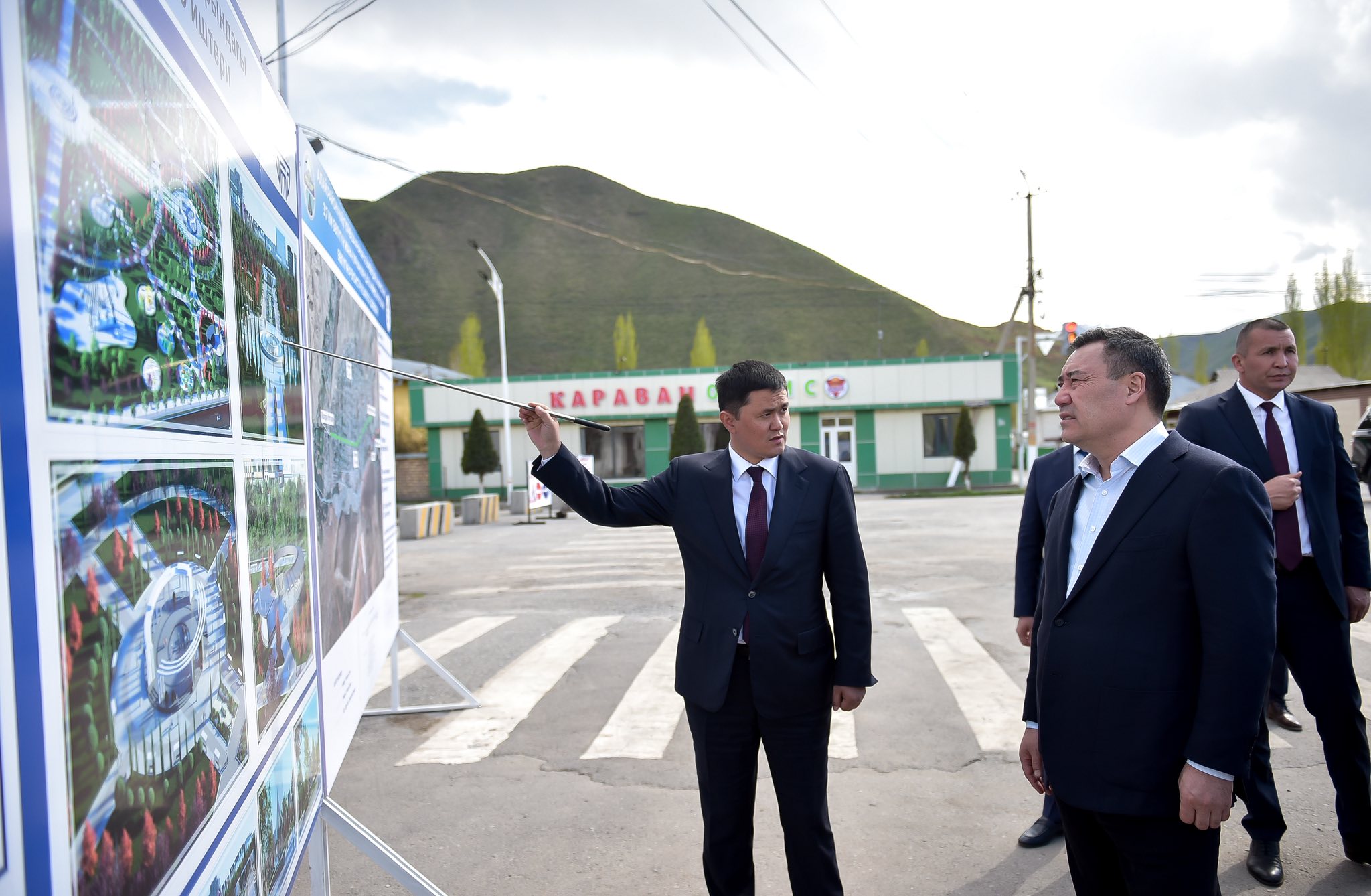 Мамлекет башчысына шаардын ички жолдорун жана тротуарларын куруу иштери тууралуу маалымат берилди. Транспорт жана коммуникациялар министри Талантбек Солтобаев бул иштер үчүн өлкөнүн Турукташтыруу фондунан 340 млн сом каралганын айтты.