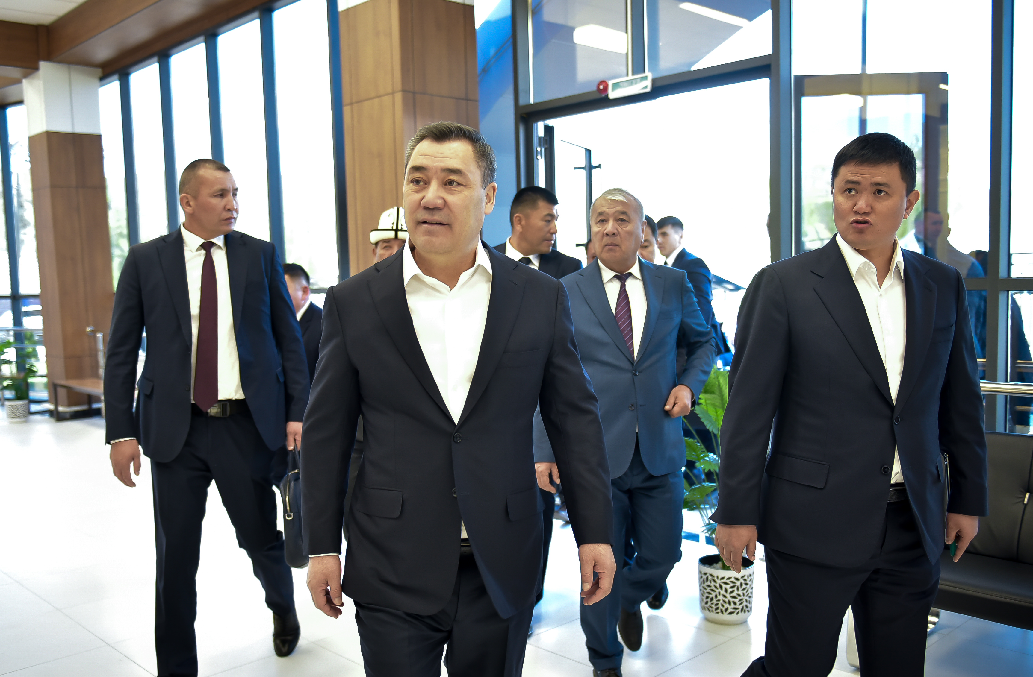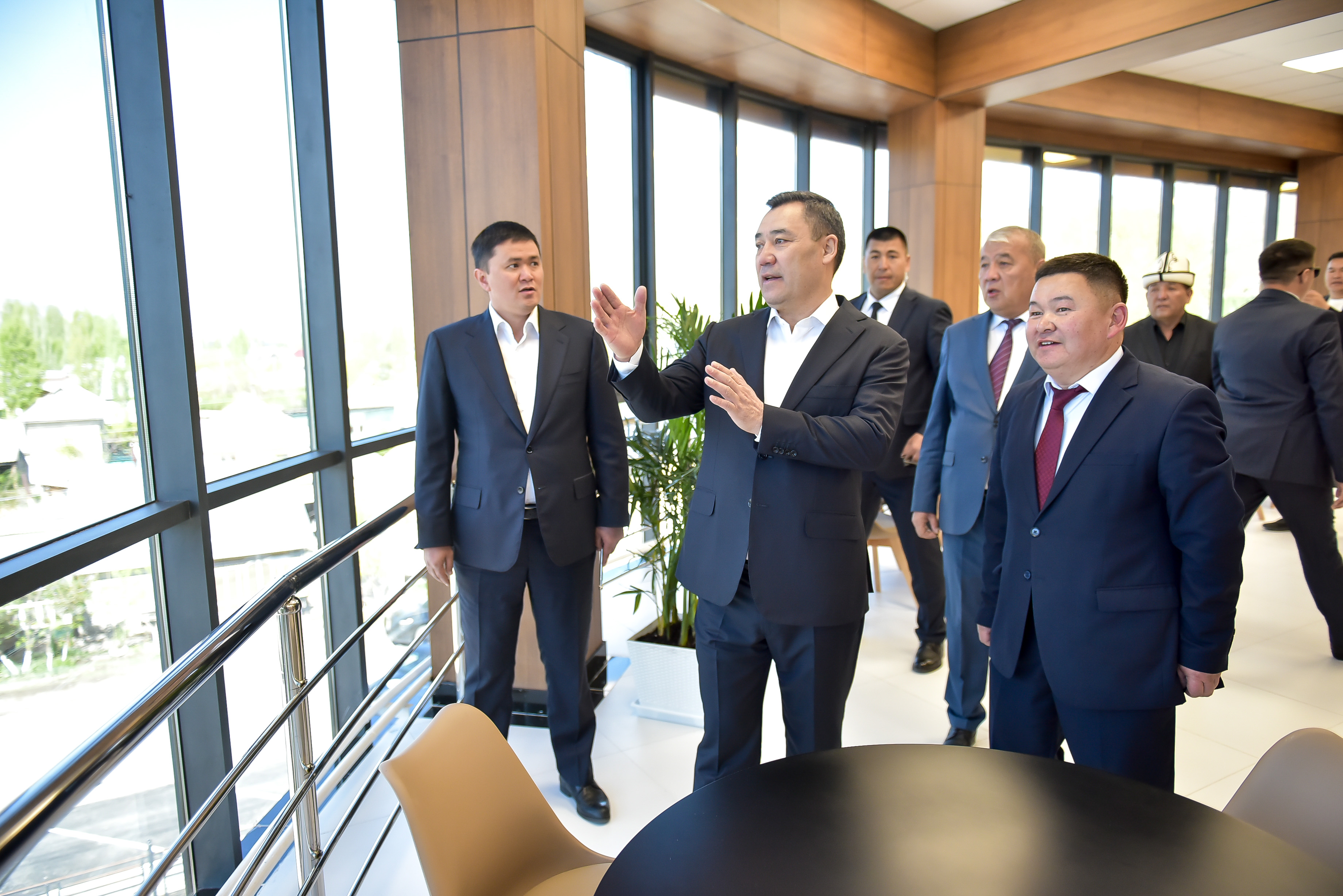 Садыр Жапаров үч кабаттуу имараттын инфраструктурасы менен таанышып, андагы калкты тейлөө бөлүмдөрүн, кинотеатр, машыгуу залын, банк бөлүмдөрүн, конференц-залды жана башка коомдук жайларды көрүп чыкты.