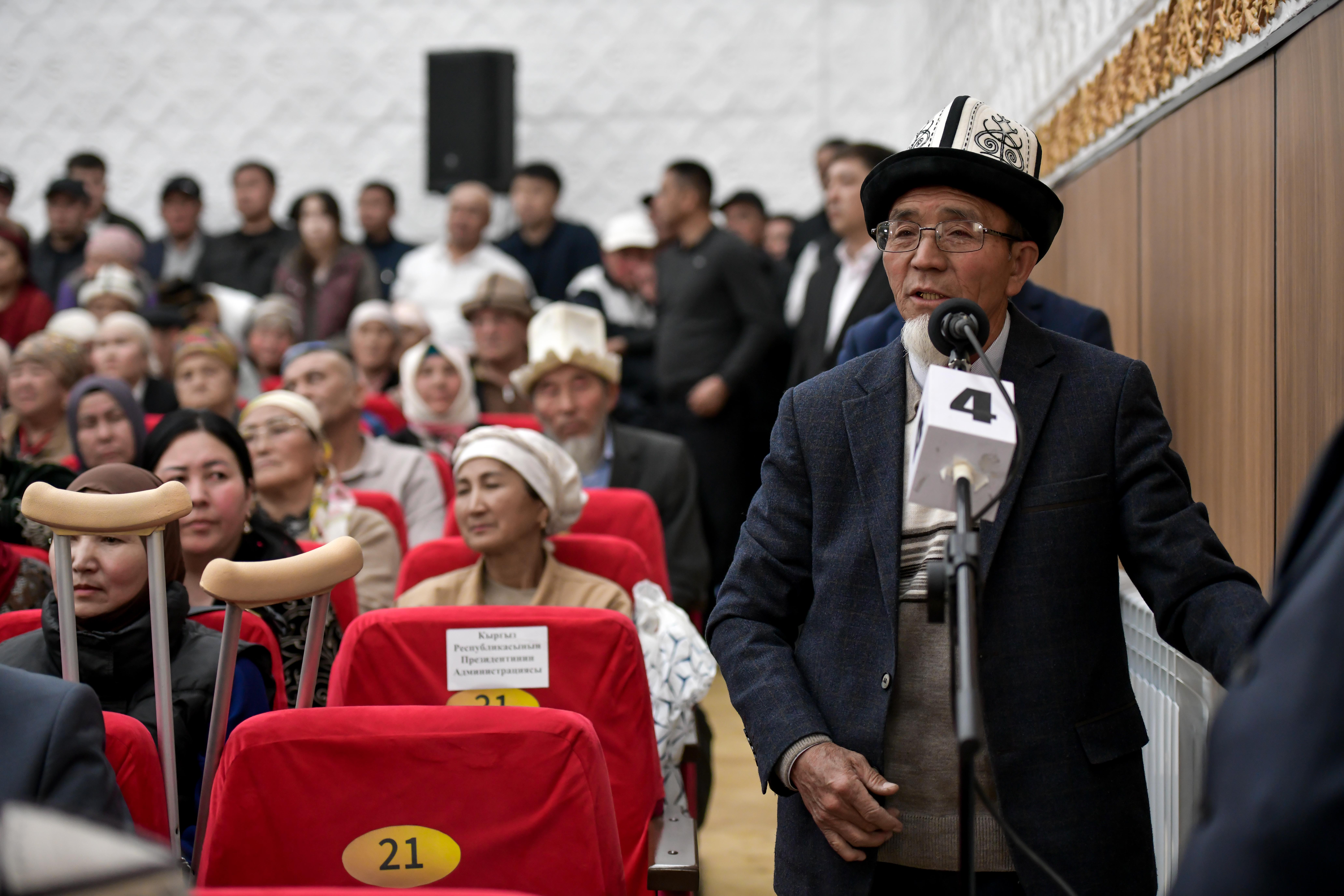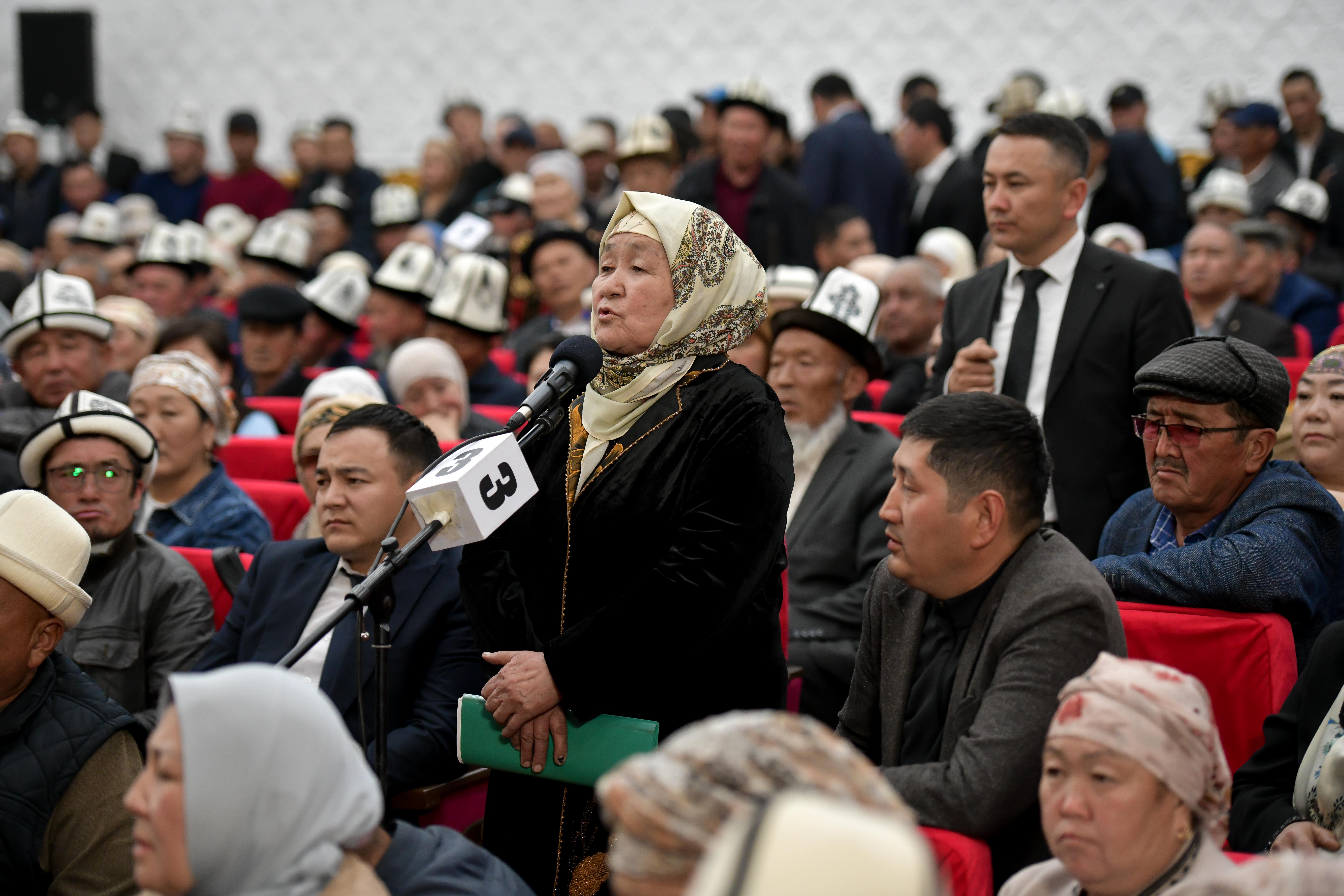 Жолугушууда тургундардын бири министрликтердин жана мамлекеттик органдардын жетекчилеринин аймактарга бат-баттан барып туруусу тууралуу сунуш киргизип, көп маселелерди жергиликтүү деңгээлде чечүүгө болорун айтты.