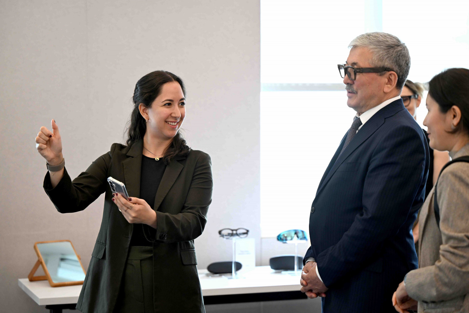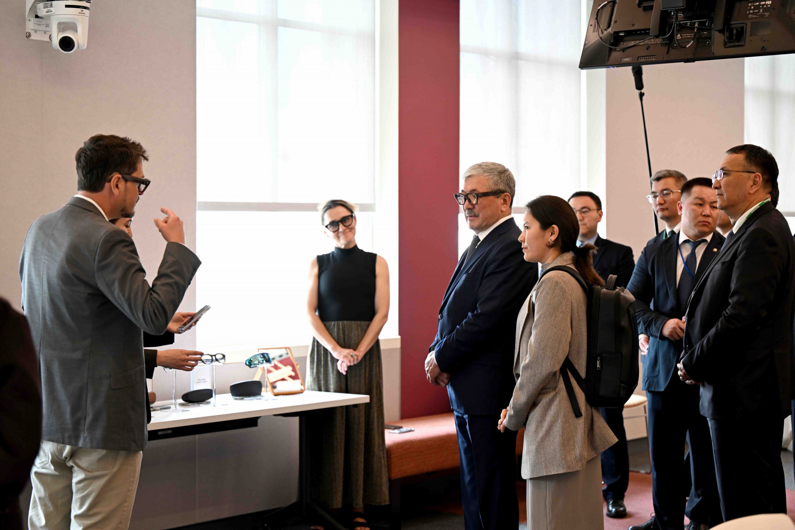 Презентация кийилүүчү электроника жана кеңейтилген реалдуулук (AR) тармагындагы заманбап өнүгүүлөргө өзгөчө басым жасады. Адылбек Касымалиевге жасалма интеллект орнотулган акыркы үлгүдөгү акылдуу көз айнектердин мүмкүнчүлүктөрү көрсөтүлдү. Мындай технологиялар медицина жана билим берүү үчүн гана эмес, социалдык инклюзивдүүлүктү жогорулатуу үчүн, тагыраак айтканда, ден соолугунун мүмкүнчүлүгү чектелген адамдар үчүн санариптик жардамчы инструменттерди түзүү үчүн жаңы горизонтторду ачары белгиленди.
