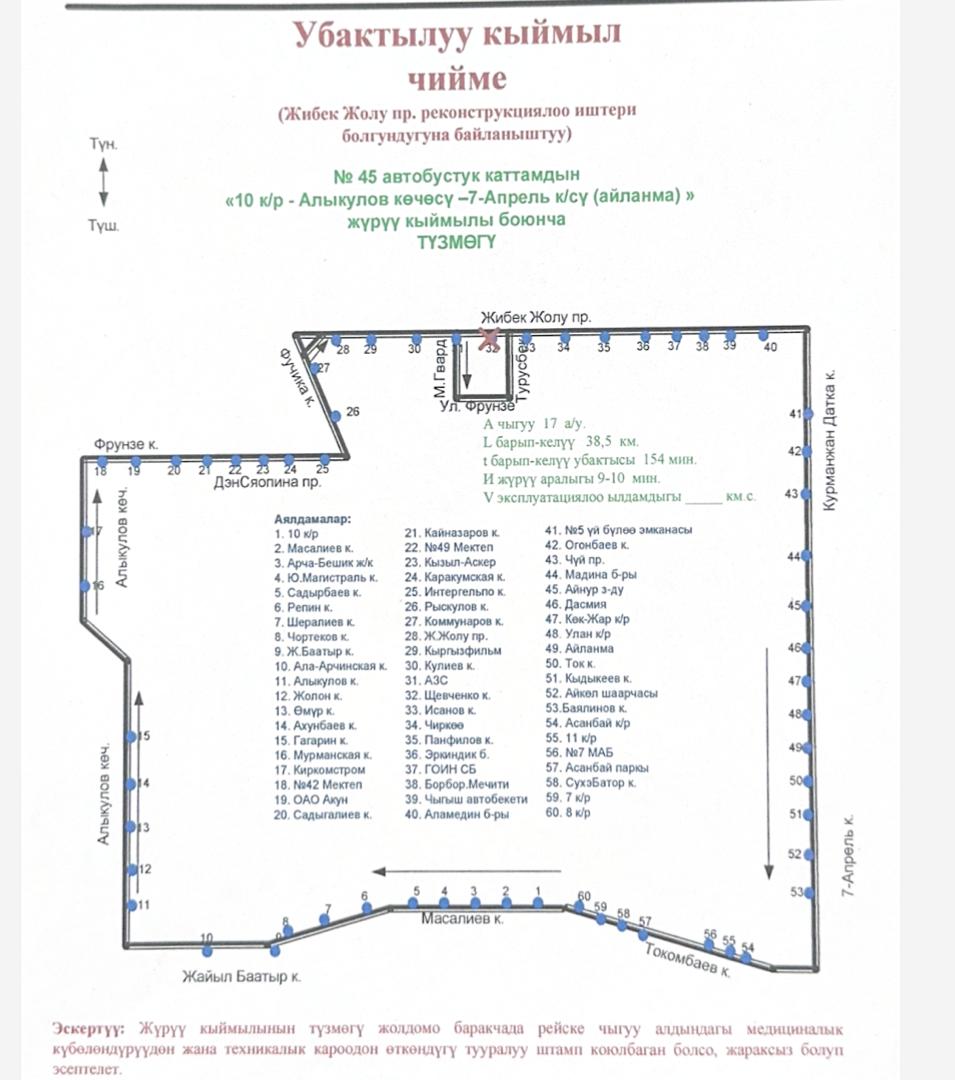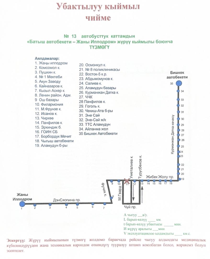 Бишкектеги Жибек Жолу проспектиси Жаш Гвардия бульварынан Калык Акиев көчөсүнө чейинки бөлүгү жол кыймылы үчүн жабылгандыгына байланыштуу №13, №23, №35, №45 каттамдар убактылуу өзгөртүлдү. Бул тууралуу мэриянын басма сөз кызматы билдирди.