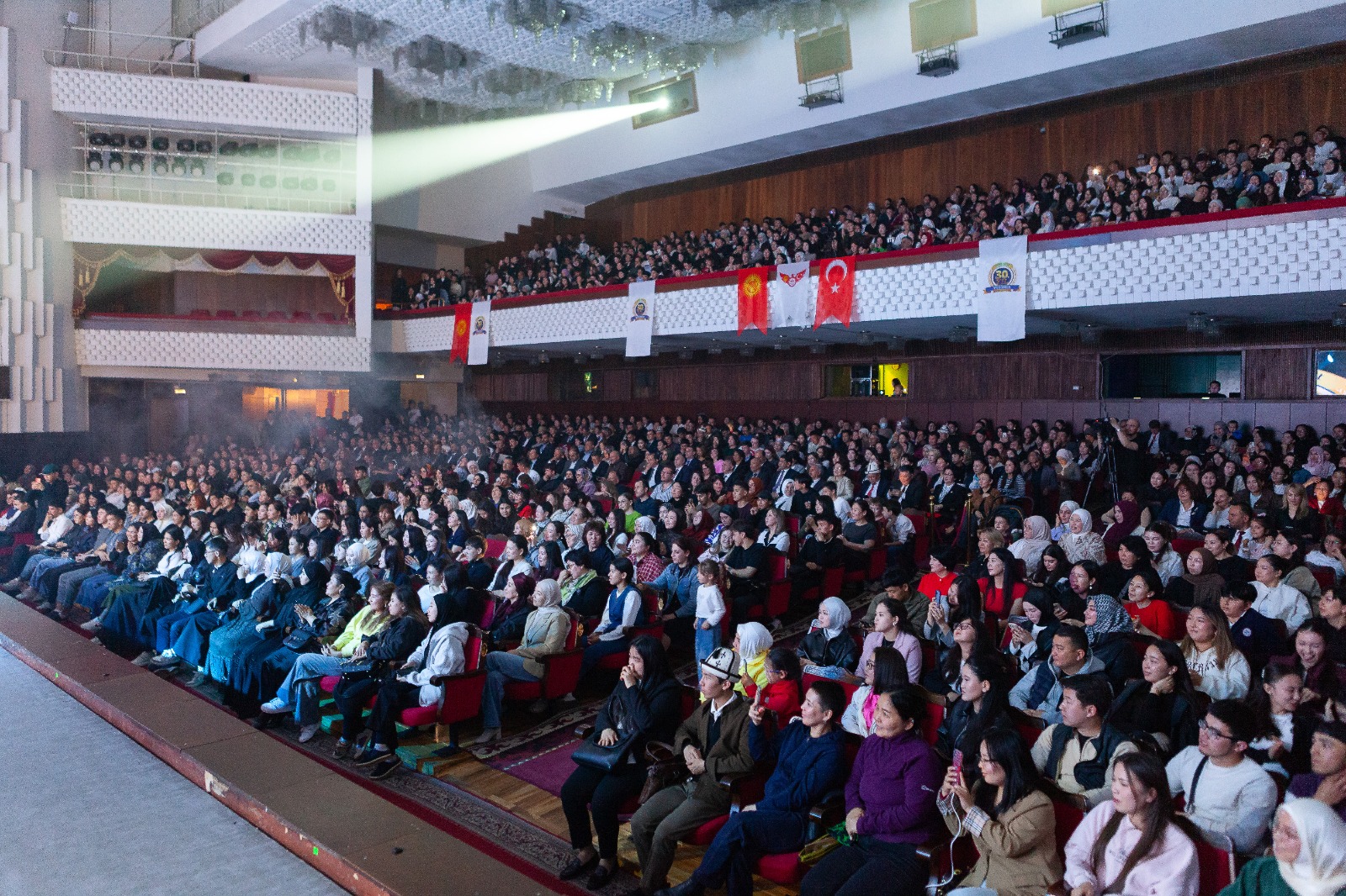 1995-жылы Кыргыз-Түрк “Манас” университетин ачтык. Бүгүн ал дүйнөдөгү биринчи миң университеттин катарына кирди жана ал - Түрк дүйнөсүнүн жылдызы. Бүгүнкү күнгө чейин аталган университетти он беш миңден ашык студент бүтүрсө, учурда жети миң студенти билим алып жатат. Манас - бул Кыргызстандагы кыргыз тилинде билим берген жалгыз университет. Андан тышкары: балдарыбыз үчүн акысыз, бекер билим берилүүдө. Бул үчүн сыймыктанабыз.
