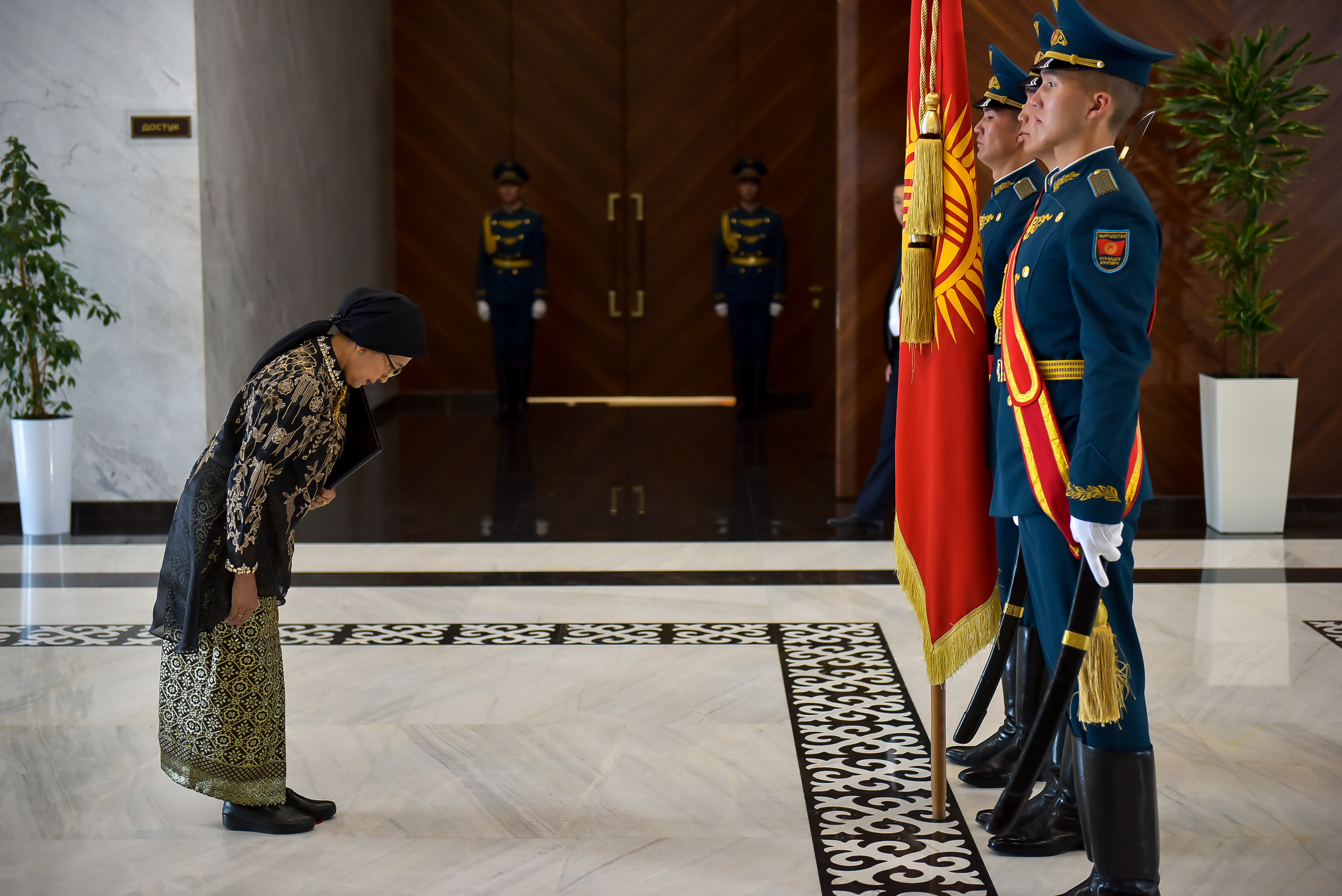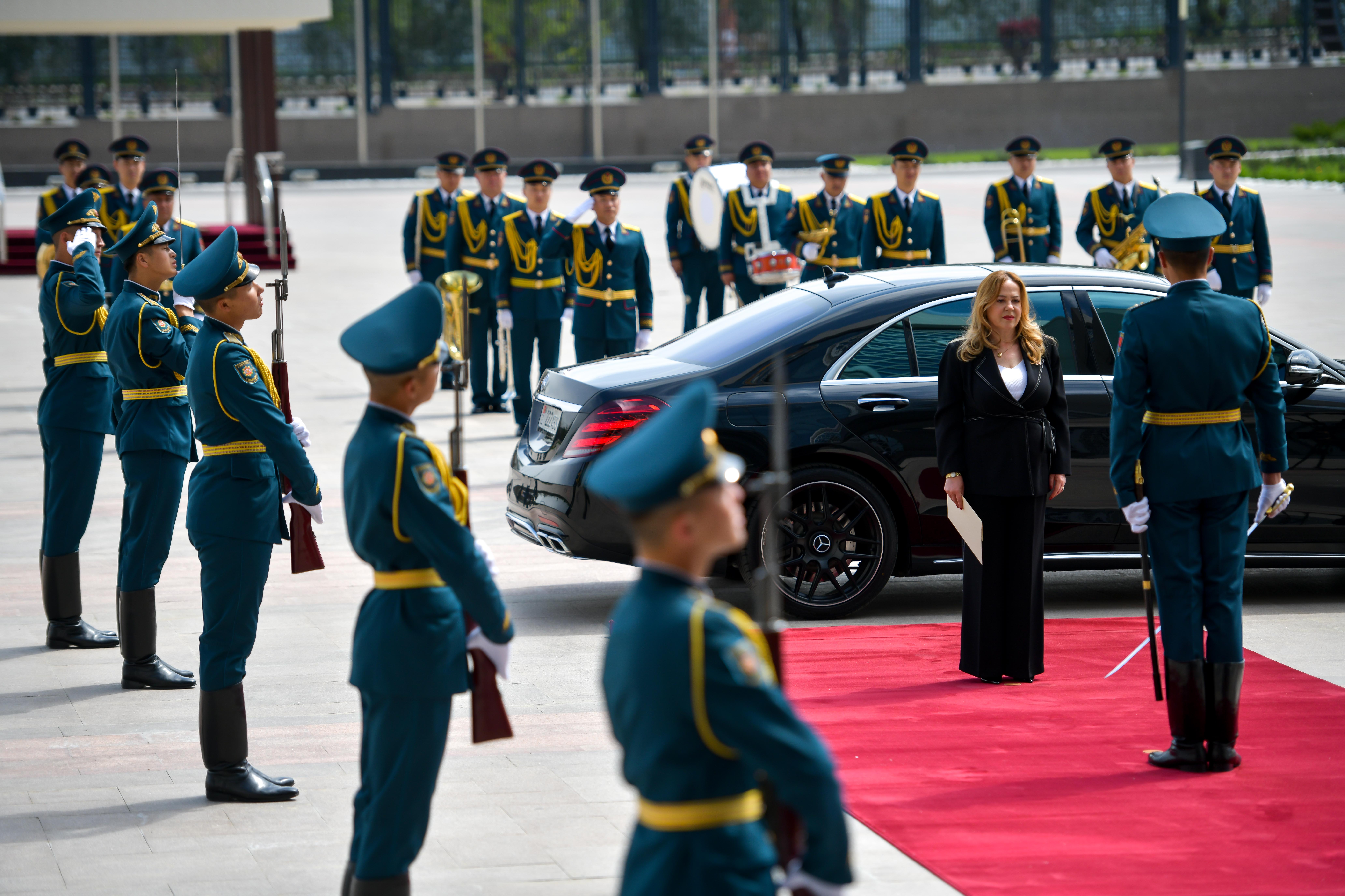 Салтанаттуу азем чет элдик дипломатиялык миссиялардын башчыларын Ардактуу кароол менен тосуп алуудан башталып, андан соң элчилер Президент Садыр Жапаровго ишеним грамоталарын тапшырышты.