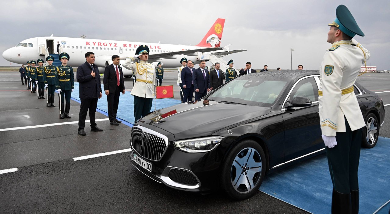 Президент Садыр Жапаровду Казакстан Республикасынын премьер-министри Олжас Бектенов тосуп алды.