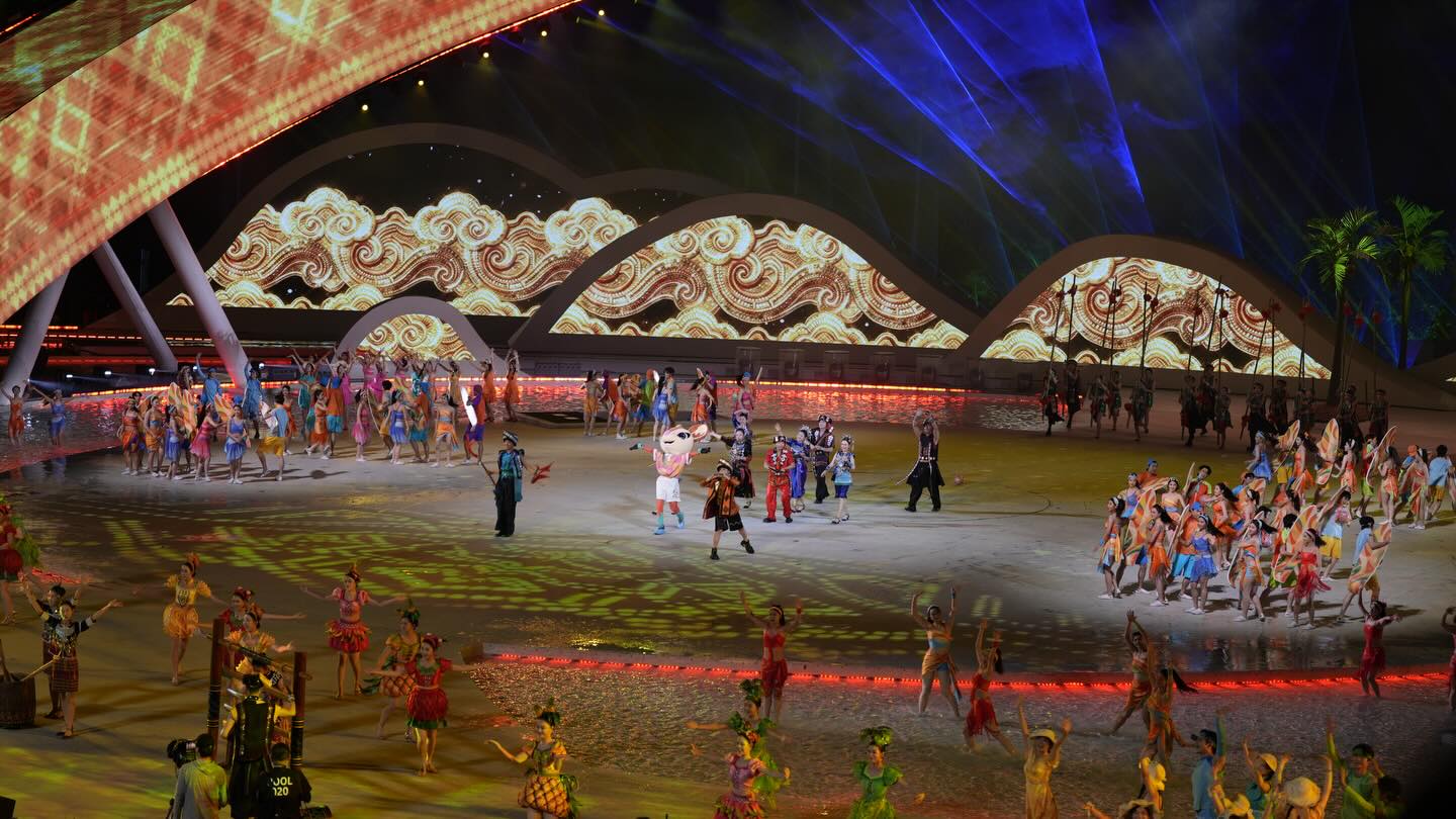 Салтанаттуу ачылыш азем жергиликтүү убакыт боюнча саат 19:00до башталып, атайын концерттик шоу-программа менен уланды.Ар бир мамлекет салтанатуу параддан өтүп, Кыргыз Республикасынын мамлекеттик туусун жеңил атлет Тимур Исаков көтөрдү.