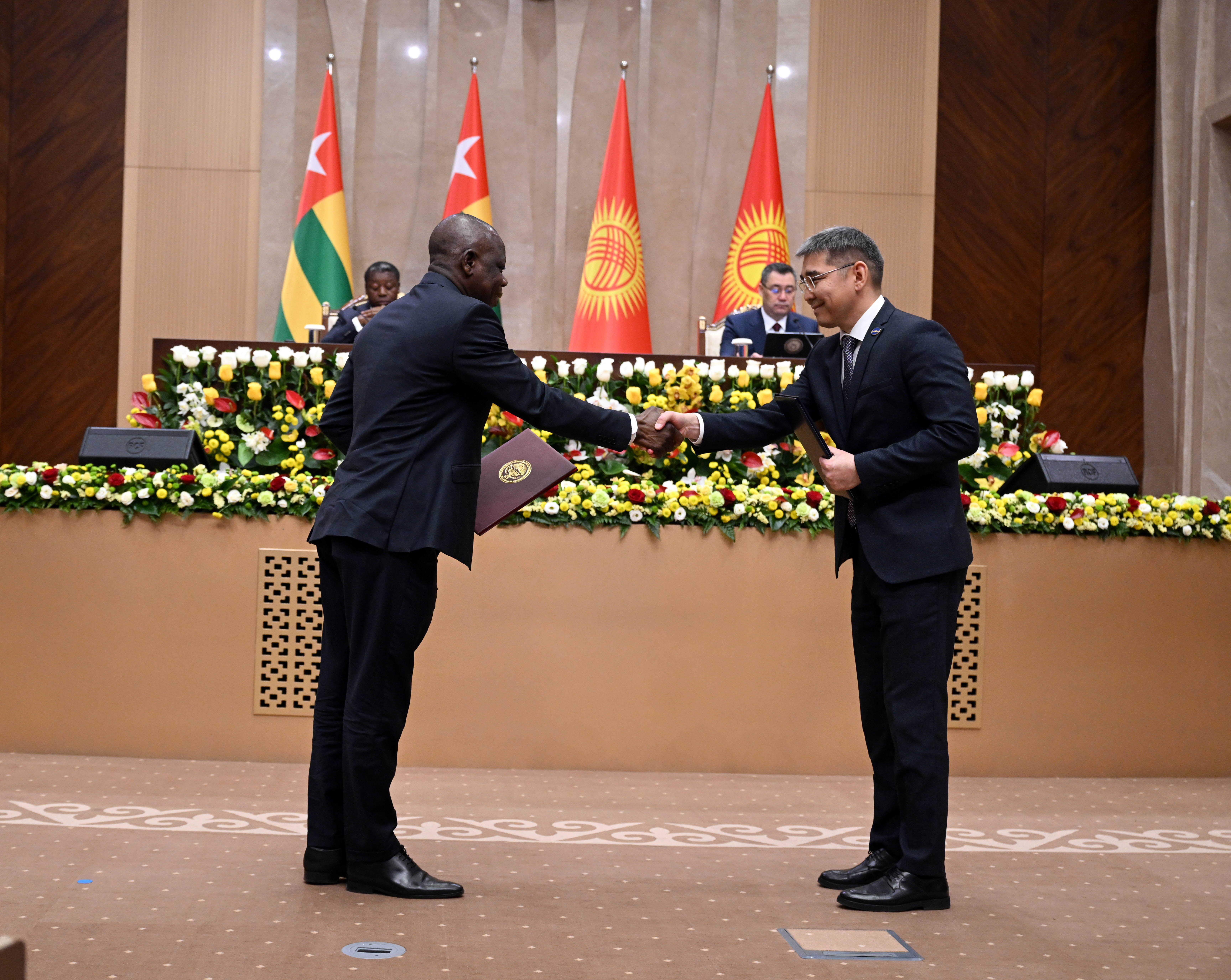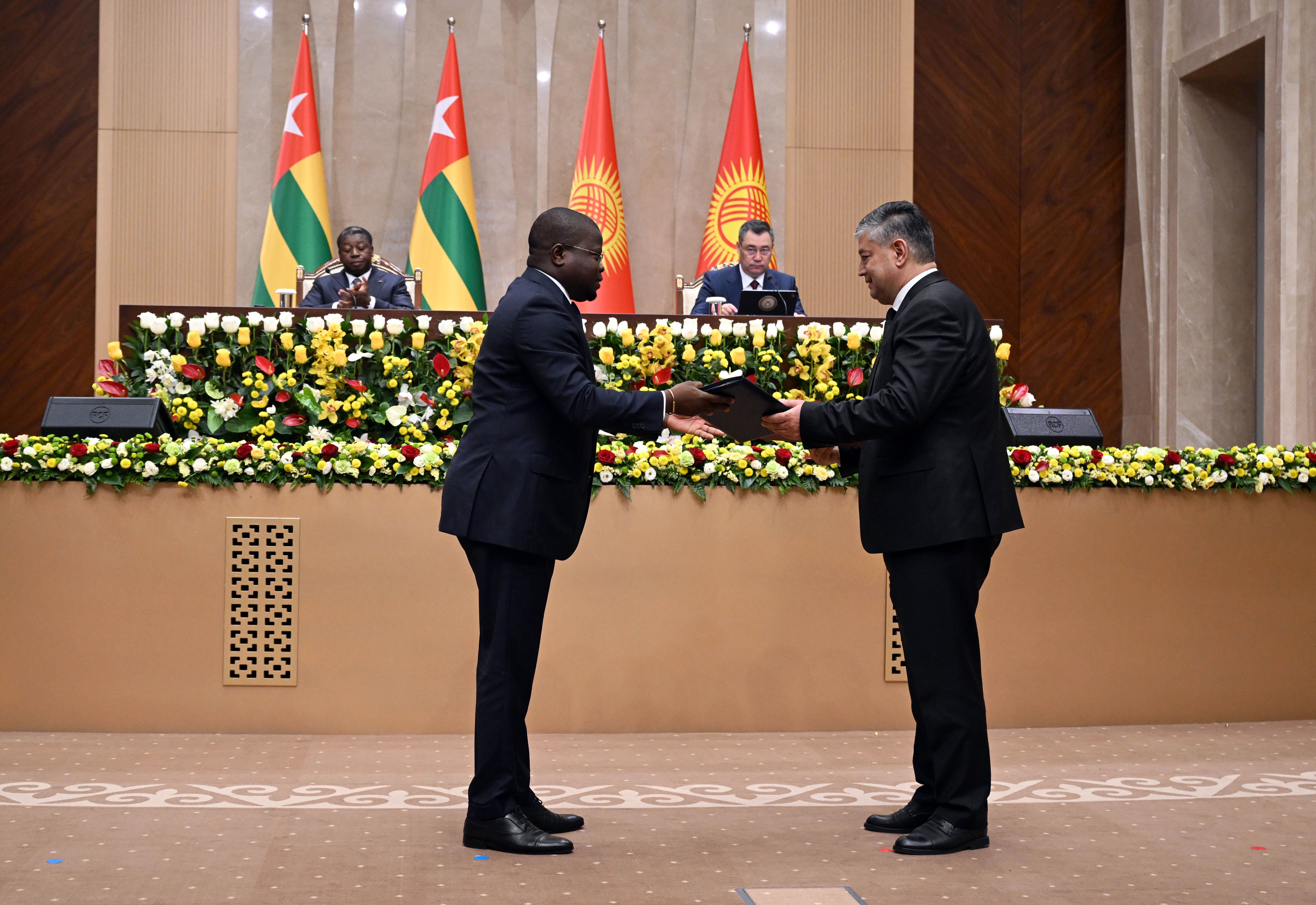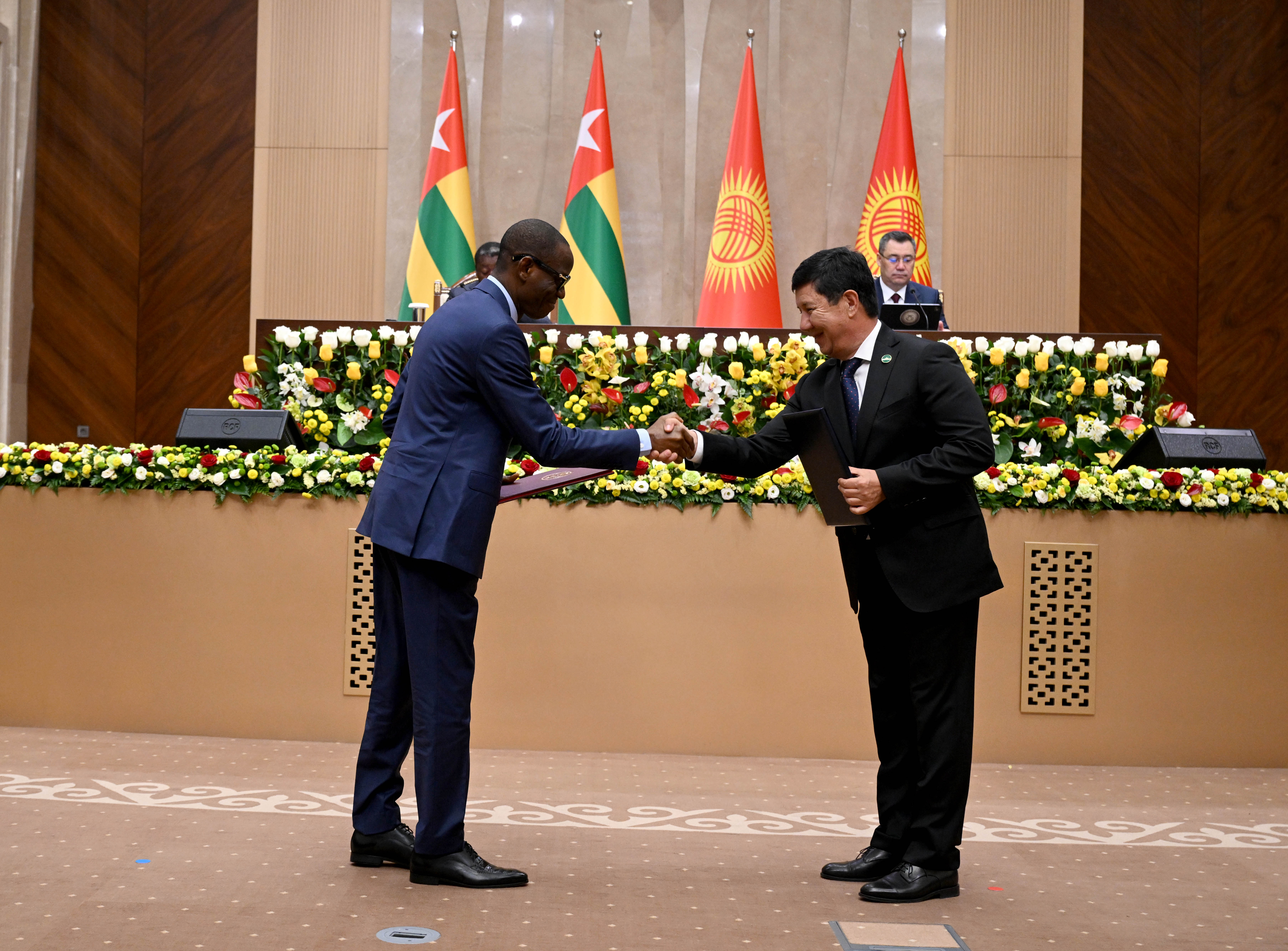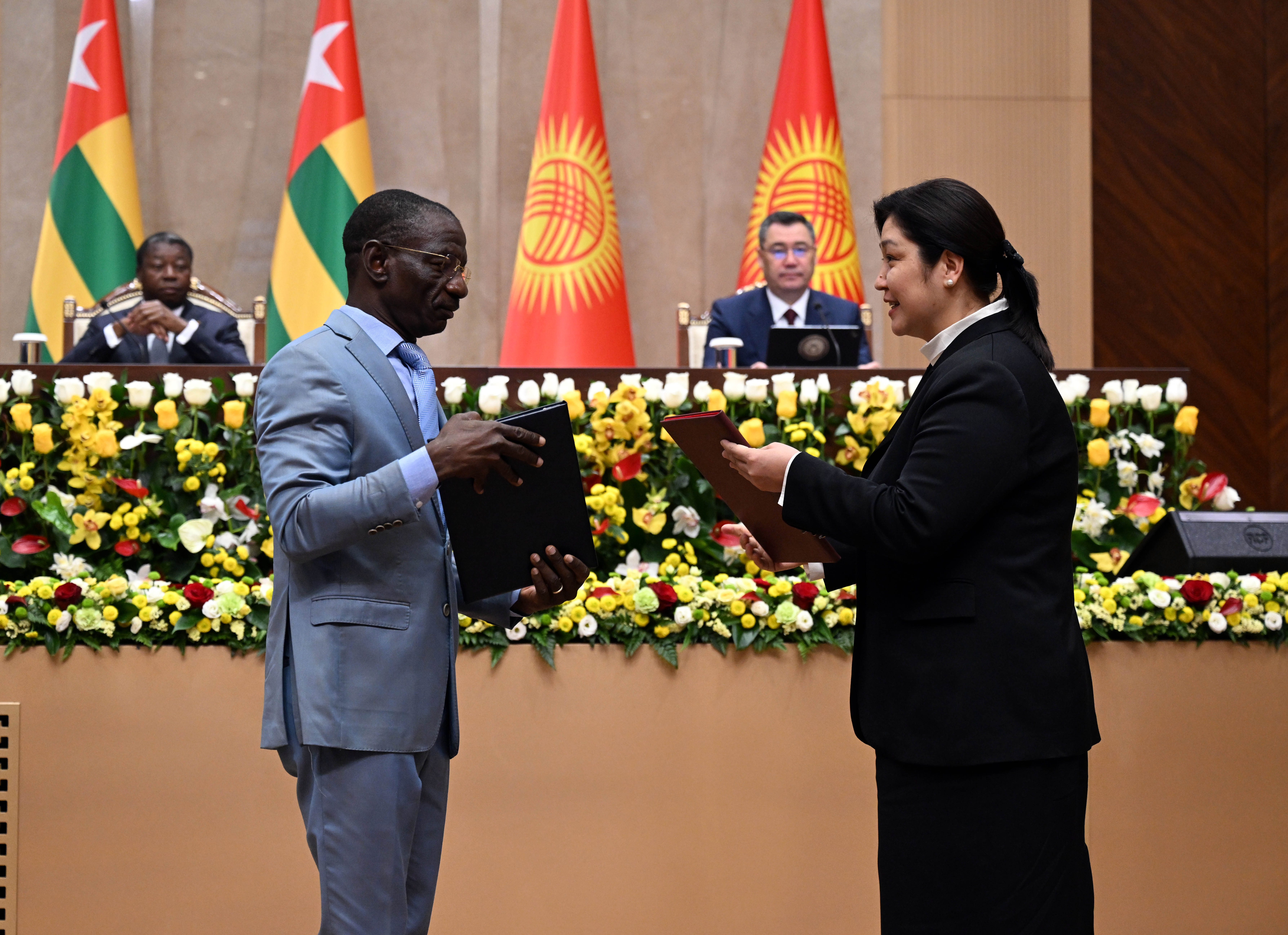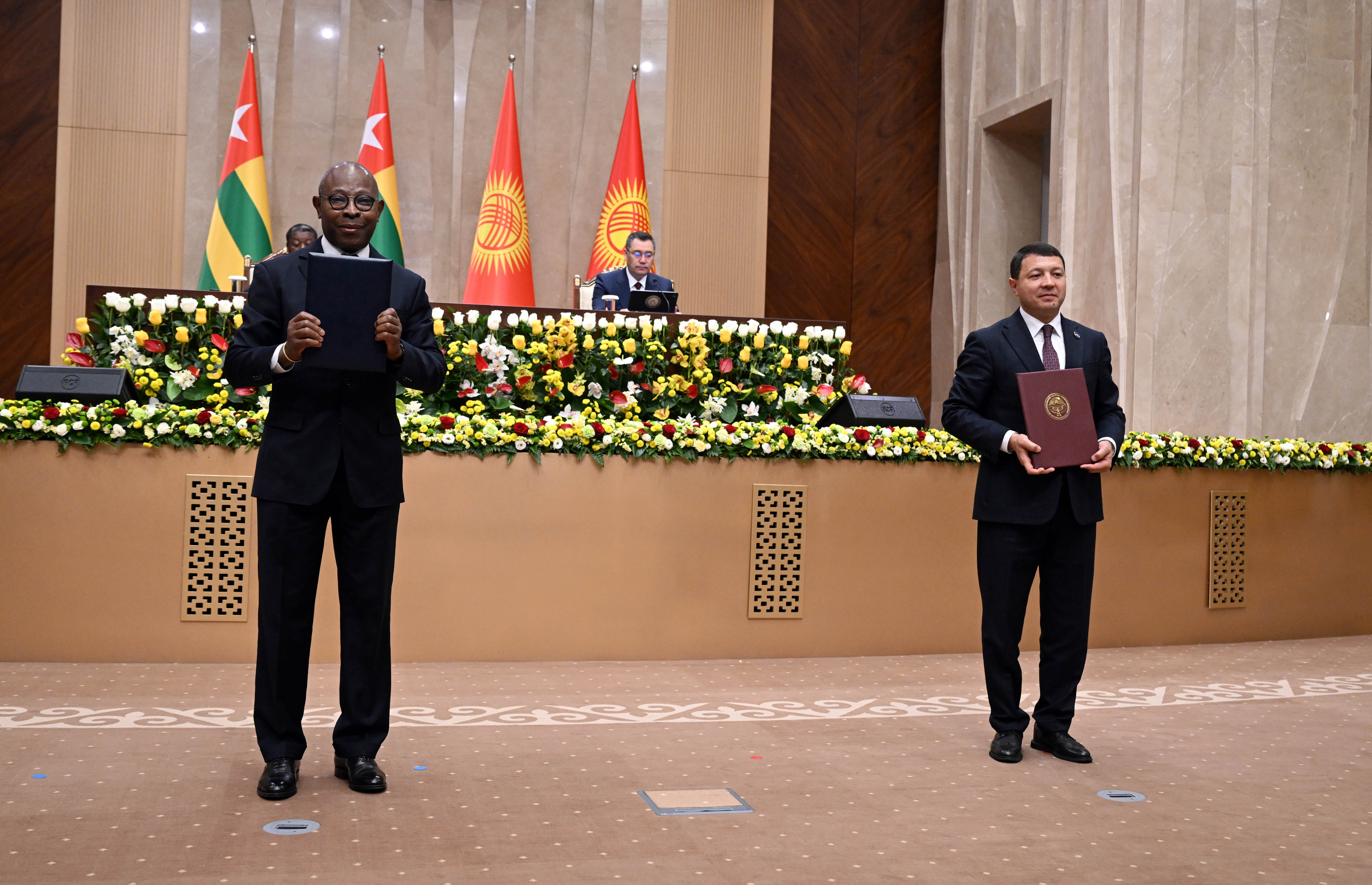 Того Республикасынын Министрлер Кеңешинин Төрагасы Фор Эссозимна Гнассингбенин Кыргыз Республикасына болгон расмий сапарынын алкагында бүгүн, 29-апрелде, билим берүү, айыл чарба, саламаттык сактоо, инвестицияларды коргоо, санариптик өнүгүү жана маалымат технологиялары жаатындагы өз ара аракеттенүүнү күчөтүүгө багытталган бир катар эки тараптуу документтерге кол коюлду.