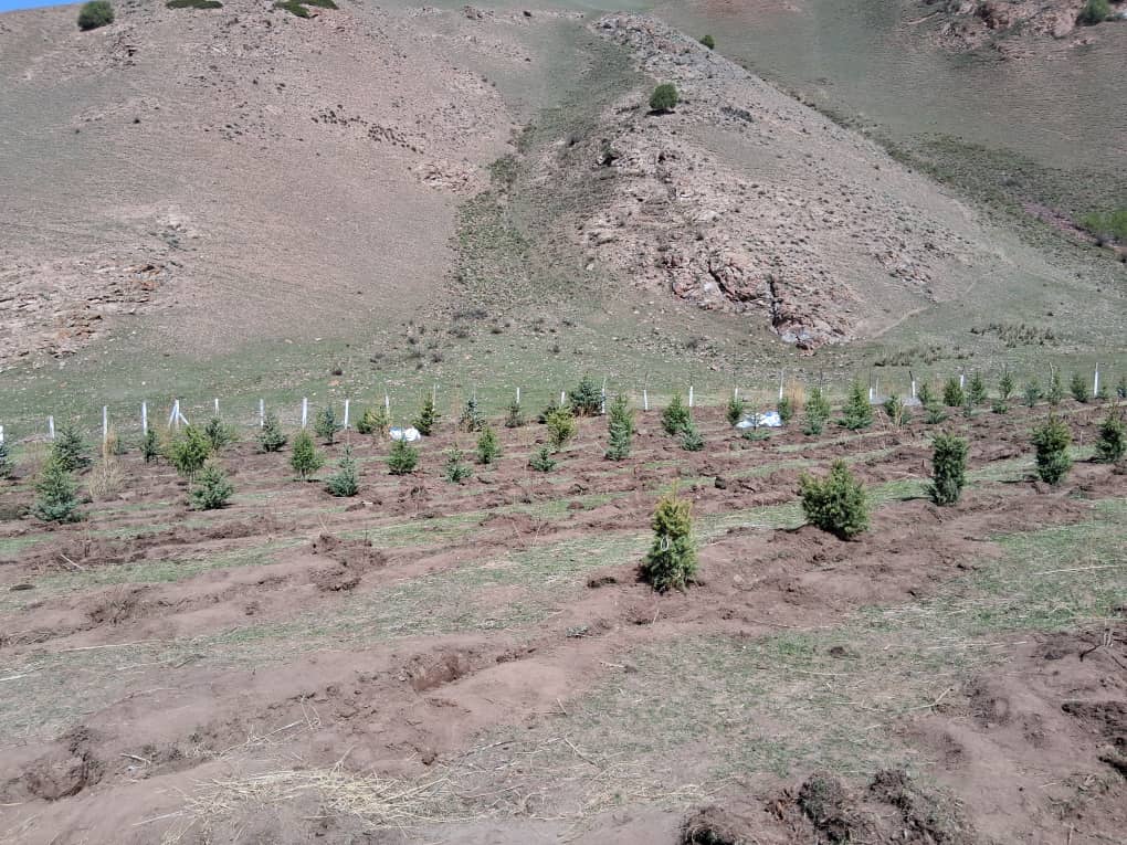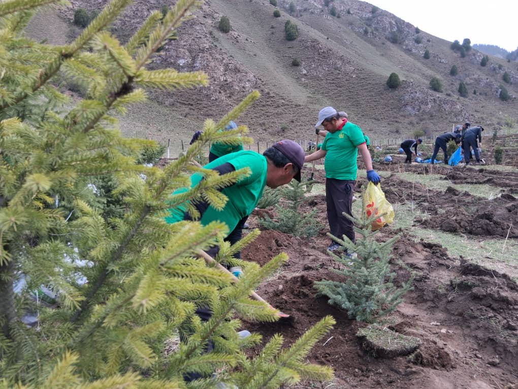 Бүгүн, 30-апрелде Нарын районуна караштуу Дөбөлү айыл өкмөтүнүнүн Кур-Сай чөлкөмүндө бир гектардан ашык жерге 1200 түп көчөт тигилди.