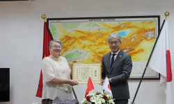 Жапон тилин изилдеп, илимдин докторлук даражасына ээ болгон жалгыз кыргызстандык Галина Воробьёвага Япониянын Тышкы иштер министрлигинин Ардак грамотасы тапшырылды. Сыйлыкты тапшырып жатып Жапониянын Кыргызстандагы элчиси Маэда Тышкы иштер министринин Ардак грамотасы - күн чыгыш өлкөсү менен до...