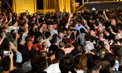 Грузин полициясы Тблисидеги парламент имаратынын алдына нааразылык акциясына чыккан адамдарды таратуу үчүн желим октор менен көздөн жаш агызчу газ колдонду. Өлкөнүн Саламаттык сактоо министрлигинин болжолдуу маалыматы боюнча митингдин 14 катышуучусу жана 38 полиция кызматкери жаракат алды. Бейш...