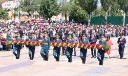 POST1RIGHTУлуу Ата Мекендик согушта курман болгон аталардын, кайтпай дайынсыз болгон чоң аталардын ошондой эле Жеңишти алып келген бабалардын сүрөттөрүн көтөргөн жоон топ эл, патриоттук ырлардын коштоосунда Жеңиш аянтын көздөй агылышты. Алардын арасында кийинчерээк кан майдандын даамын татып ка...