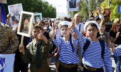 POST1RIGHTЖеңиштин 74 жылдыгына карата Москва шаарында өткөн аскердик парадка 13 000ден ашык аскер кызматкери, 132 даана аскердик техника катышты. Параддан соң "Өлбөс полк" жүрүшү болду. Жүз миңдеген катышуучу Улуу Ата Мекендик согушка катышкандардын сүрөтүн көтөрүп алып Москванын көч...