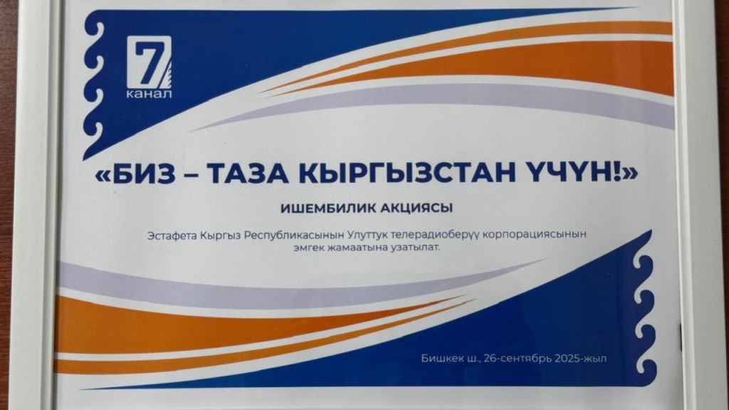 Бүгүн, 14-октябрда “Биз таза Кыргызстан үчүн” акциясынын эстафетасы 7-каналдан Улуттук телерадио корпорациясына өткөрүлдү.
