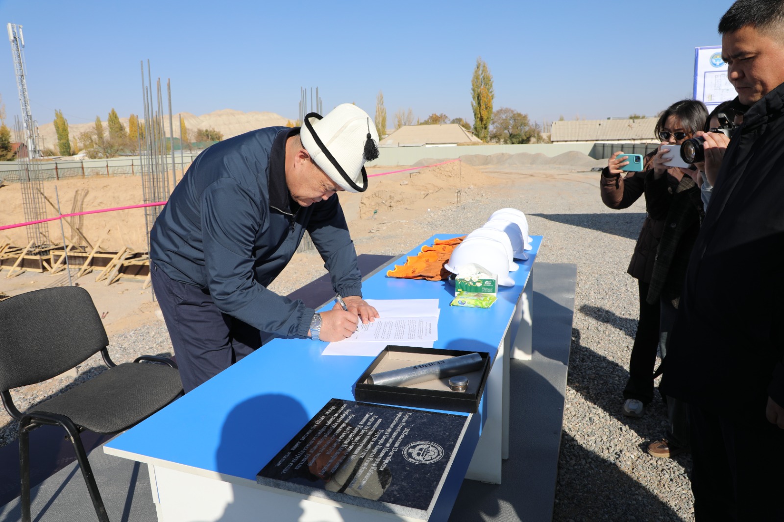 Бүгүн, 23-октябрда Министрлер Кабинетинин төрагасынын орун басары, УКМКнын төрагасы Камчыбек Ташиев Ак-Талаа районунда болгон иш сапарында сейил бактын ичине салына турган спорт комплекстин курулушуна мезгил кутусун салды.