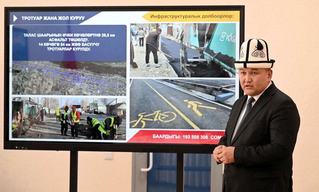 Талас шаарында 28,5 км ички жолго асфальт төшөлүп, 54 км тротуар курулду.