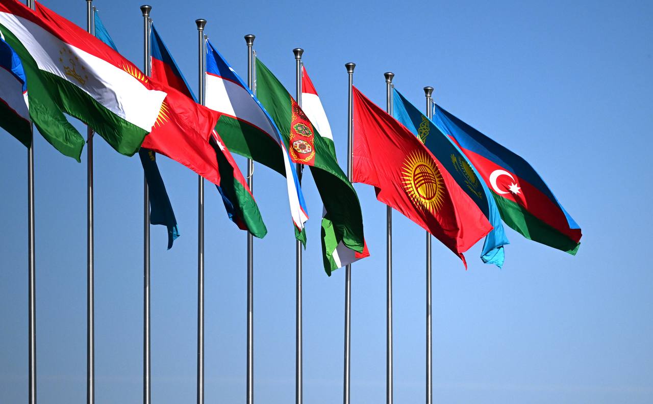 Аэропортто Борбордук Азия мамлекеттеринин мамлекеттик туулары илинип, килем төшөлүп, ардактуу кароол тизилген.