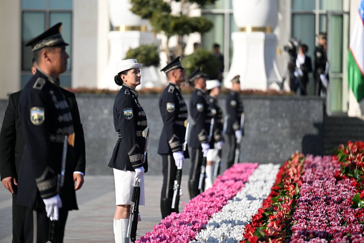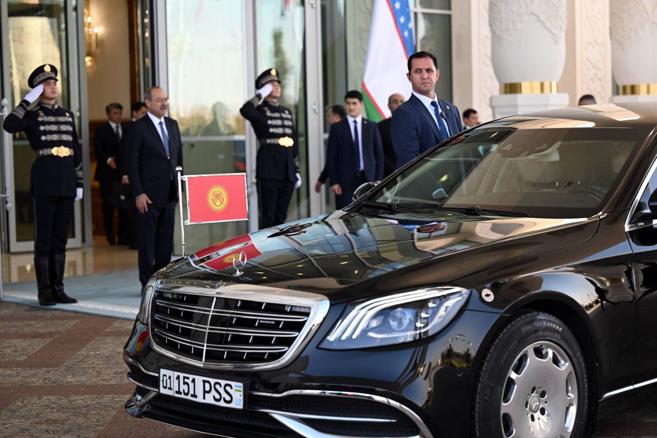 Президент Садыр Жапаровду Өзбекстандын Премьер-министри Абдулла Арипов жана башка расмий адамдар тосуп алышты.